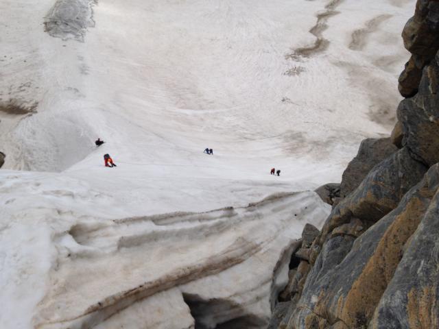 Für Eis- und Firnflanken, Spaltenbergung und sämtliche Themen ums Hochgebirge findet sich dort für jeden was.