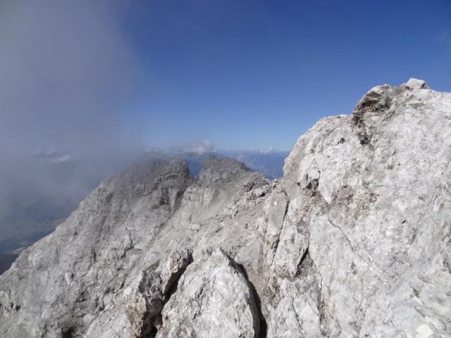 Gefahreneinschätzung: für den kleineren Solstein braucht man absolute Schwindelfreiheit und Trittsicherheit. Arg ausgesetzte Stellen, eine kurze Kletterstelle unangenehm vereist. Der Grat zum Gipfel verlangt wiederum sicheres Bewegen im Absturzgelände. Ansonsten auch Anspruch an die Kondition, da recht viele Höhenmeter zusammen kommen.