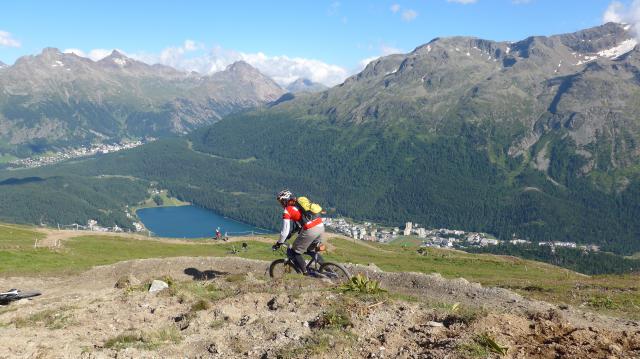Empfehlenswert ist der Trais Fluors Trail vom Piz Nair nach Bever. Ist zwar mit einigen Schiebepassagen hinauf etwas unrund, doch die Aussicht auf die Bernina und die mittelschweren Trails (in der Abfahrt) lassen das Schieben schnell vergessen. 3-4 h