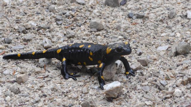 Unterwegs mit Friedhelm, einem Feuersalamander + 2 verspielten Katzen.