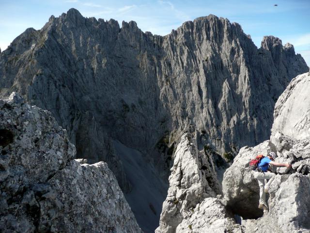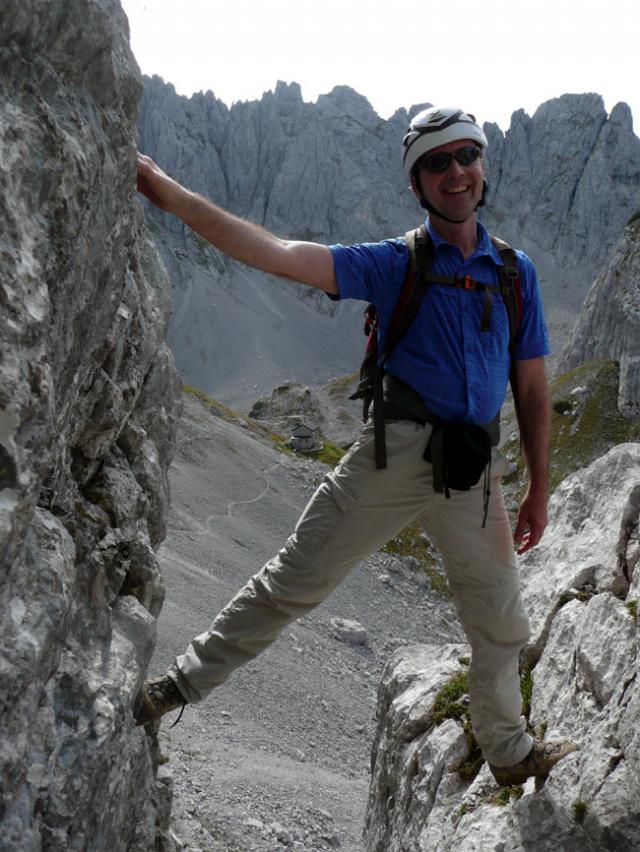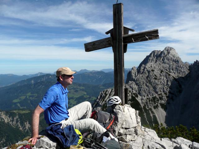 Tourenverhältnisse: Mit Tourentipp-Chef Bernhard von der Griesner Alm zur Fritz-Pflaum-Hütte und von dort in leichter Kletterei (I bis II) zum Mitterkaiser (erst Vor-, dann nochmal ca. 10 Min. zum Hauptgipfel). Alles trocken, gute Sicht, Fels an den klettertechnisch relevanten Stellen fest.
