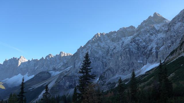 Der Hungerast ließ mich rasten. Mit Blick auf´s Karwendelhaus, dann hab´ ich´s von den Höhenmetern geschafft. Kurz vor der holprigen Abfahrt (nicht schwer) nochmal die Aussicht genossen. Die Runde durch´s Johannestal geschlossen.