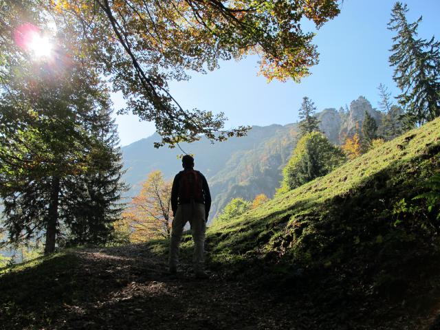 Tourenverhältnisse: Im Waldbereich feucht, aber nie batzing oder rutschig, oben trocken. Auch der weglose abstieg über die Gipfelwiese trocken und gut zu gehen. Tolles, angenehmes Wanderwetter!
