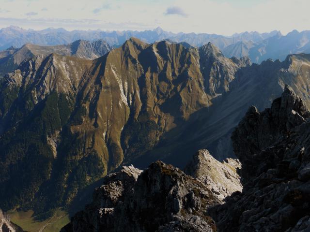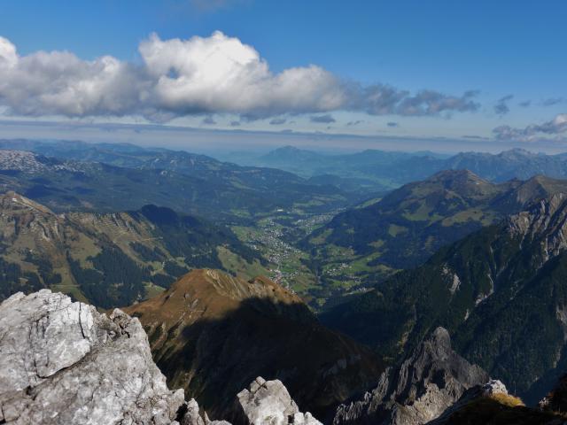 zu Bild 4: Blick nach Norden ins Kleinwalsertal; vorne rechts der Gipfel des Kleinen Widdersteins;