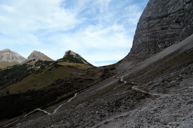 Sonstiges: Von Hinterriss (938m) durchs Laliderertal zur Falkenhütte (1846m). Von dort zur Ladiz Alpe (1751m) und über den Adlerweg in den Ahornboden. Durchs Johannestal traillastig zurück: Auf 1360m das erste Mal links weg. Den Abzweig nach links auf 1260m kann man machen, wenn man nicht auf 1140m gegenüber den Falkenreisen den Rissbach queren und den breiten Trail den Bach entlang fahren möchte. Der stößt auch auf Höhe der Rissbachbrücke (1120m) wieder auf den Schluchtweg. Wir sind ein paar Meter weiter erst, auch auf 1140m, nach rechts weg, Welcome to the North Shore. Wieder auf dem Schluchtweg (Forststrasse) auf 1020m den Abzweig links über die Rissbachbrücke genommen und auf dem Flow-Trail oberhalb des Rissbachs immer den Hang entlang bis zum Forstweg. Nach 100m rechts steil runter zur Mautstelle – man kann auch den Forstweg weiterfahren – und nach Hinterriss zurück.