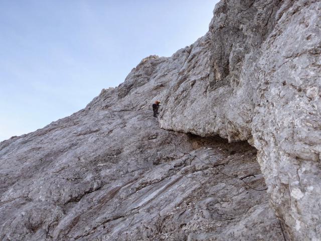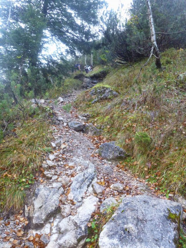 Tourenverhältnisse: gute Verhältnisse, kein Schnee, ins Matheisenkar Wurzeln und abgespeckte Steine nass und rutschig, wie in Tourentipp beschrieben gegangen