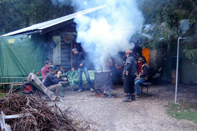 Sonstiges: Vom Skistadion in GAP (740m) an der Partnachalm (1000m) vorbei die Partnach entlang auf die Reintalangerhütte (1366m). Oben schallt es schon von weitem durchs Tal und Lagerfeuerrauch nebelt alles ein: Saisonabschlussfête, das Motto: Terrorcamp! Simon ist ein Supergastgeber, es gibt Freibier. Drei Bier später ist klar, dass es mit runterfahren nix mehr wird, also Andis Geburtstag erst recht begossen