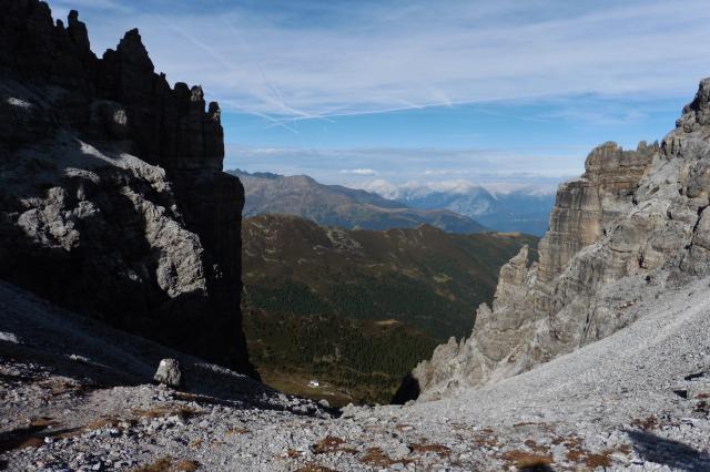 zu Bild 2: Blick aus der Alpenklubscharte hinunter zur Adolf Pichlerhütte;