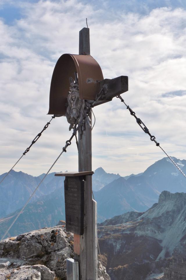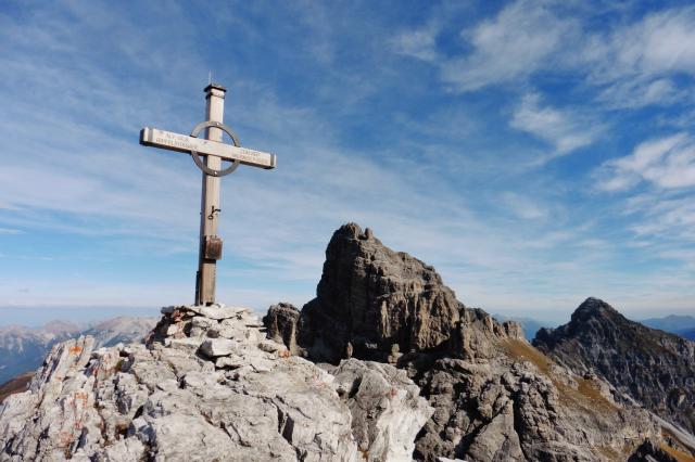 zu Bild 4: Gipfelkreuz Gr. Ochsenwand; ganz rechts der Gipfel des Habichts;