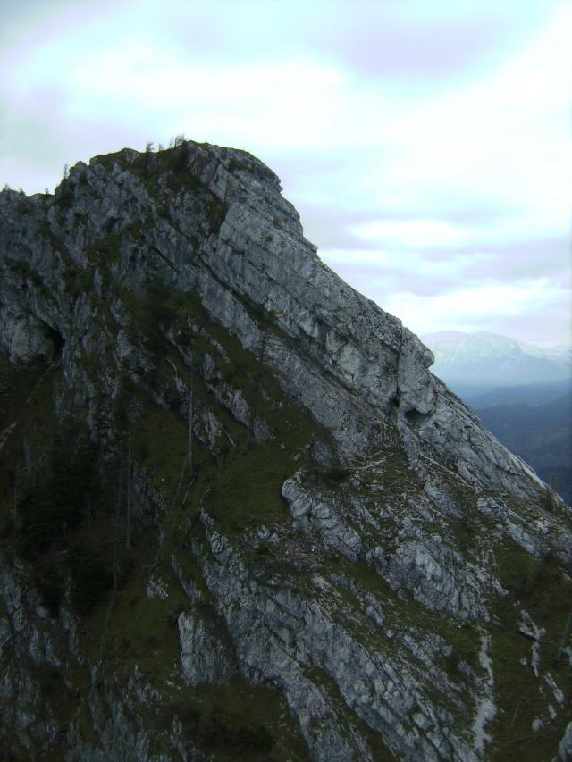 zu Bild 3: der Kl. Schoberstein; links der obere Teil des Südgrates; durch die grasige Steilflanke führt der Abstieg;