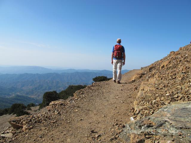Auch heute wieder traumhaftes Wanderwetter. Die Bergwanderng führt auf einer Höhe von ca. 1800 m um den Olymp, deen höchsten Berg Zyperns herum. Auf dieser Höhe Sonne und ca. 15 Grad, da kommt man nicht ins Schwitzen. Der Weg ist perfekt ausgeschildert und beginnt gleich hinter Trodoss. Am Olympos gibt es übrigens auch ein kleines Skigebiet.