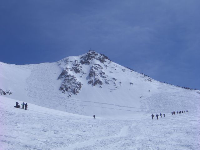 Tourenverhältnisse: Traumbedingungen heute auf der Wildspitze, Pulverschnee im oberen Bereich, Spalten sehr gut zu, Abfahrt über den Taschachferner bis fast zum Parkplatz der Bahn möglich! (ca. 10 min. Ski tragen) Gipfelgrat gut begehbar, Steigeisen nicht unbedingt notwendig jedoch hilfreich. Sehr sehr viel Gleichgesinnte (letztes Bild