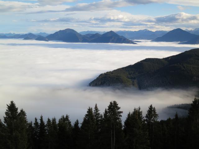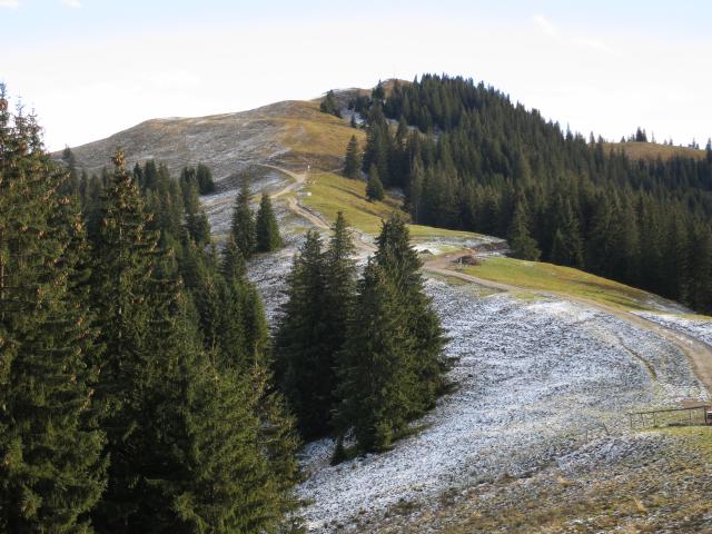 Tourenverhältnisse: Aufstieg am beschilderten Weg über die Hörnlehütte: Weg teils trocken, teils feucht und/oder etwas batzig. Abstieg in etwa der Skiroute folgend: nach der Hörnlealm war es ebenfalls teils trocken, teils feucht, aber auch oft unangenehm batzig.
