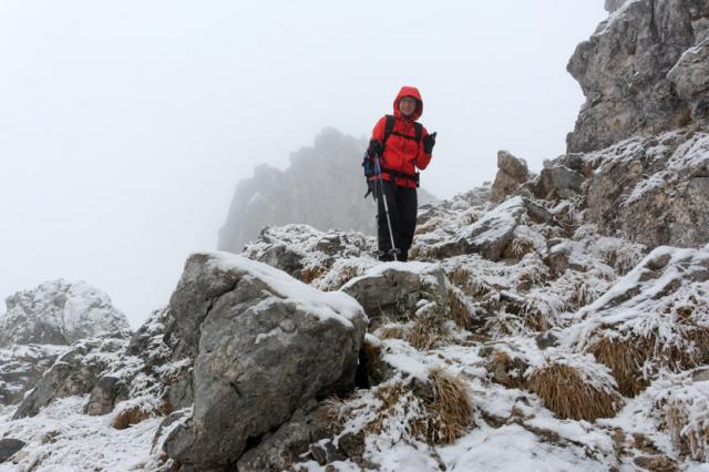 Tourenverhältnisse: ganz leichte Neuschneeauflage. Derzeit wenig Schnee, kein Eis. Grödel/Steigeisen/Schneeschuhe absolut unnötig.