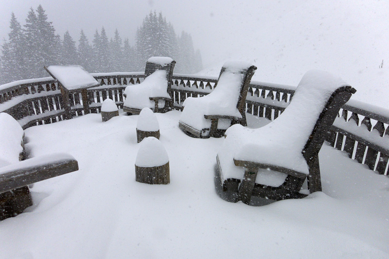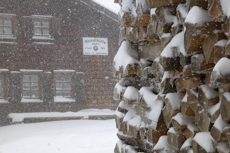 Tourenverhältnisse: Super Pulverschnee, ideal für die Schneeschuhe. Mit Tourenski würde ich es aber noch nicht gehen wollen - null Grundlage, speziell im Wald echt gefährlich. Aufstieg über Skitourenroute zum Gipfel, Abstieg direkt von der Hütte bergab.