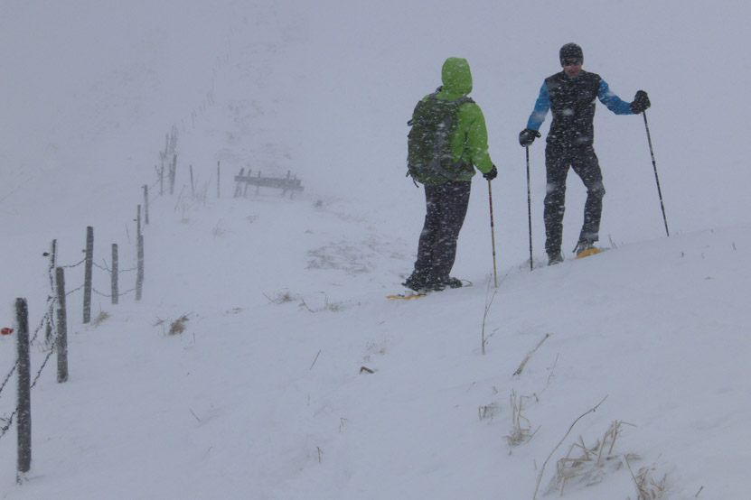 Tourenverhältnisse: Aufstieg über Grasleitensteig (etwas rutschig, aber mit Bergschuhen gut zu begehen). Deutlich weniger Schnee als gestern bei Unterammergau. Obwohl heute etwa 15cm dazugekommen sind...