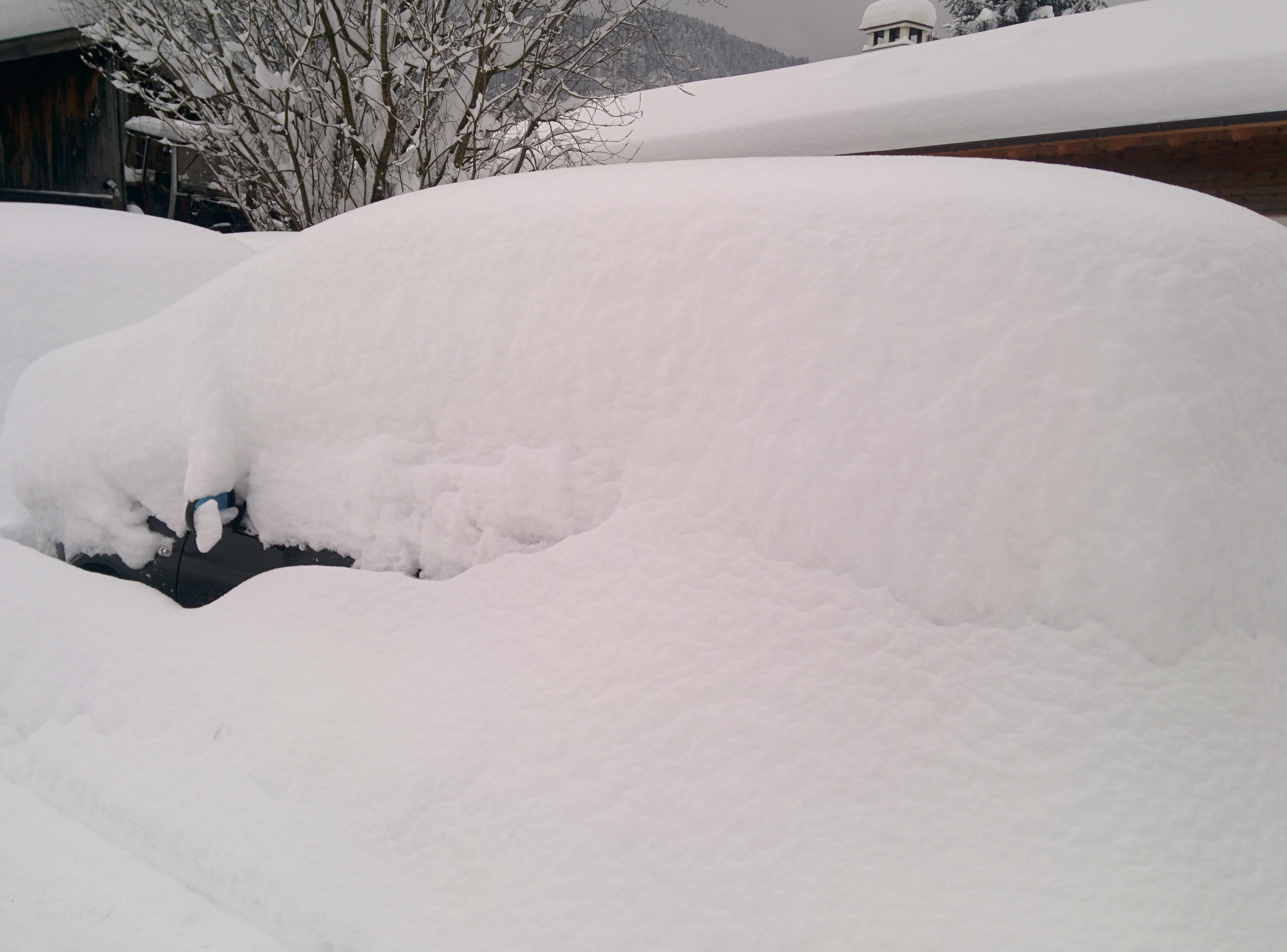 Tourenverhältnisse: Spurschwerstarbeit mit 2 Kollegen. Unglaublich viel Neuschnee. Abfahrt im Gipfelhang und nach den Hütten 1A, danach zu viel Schnee...