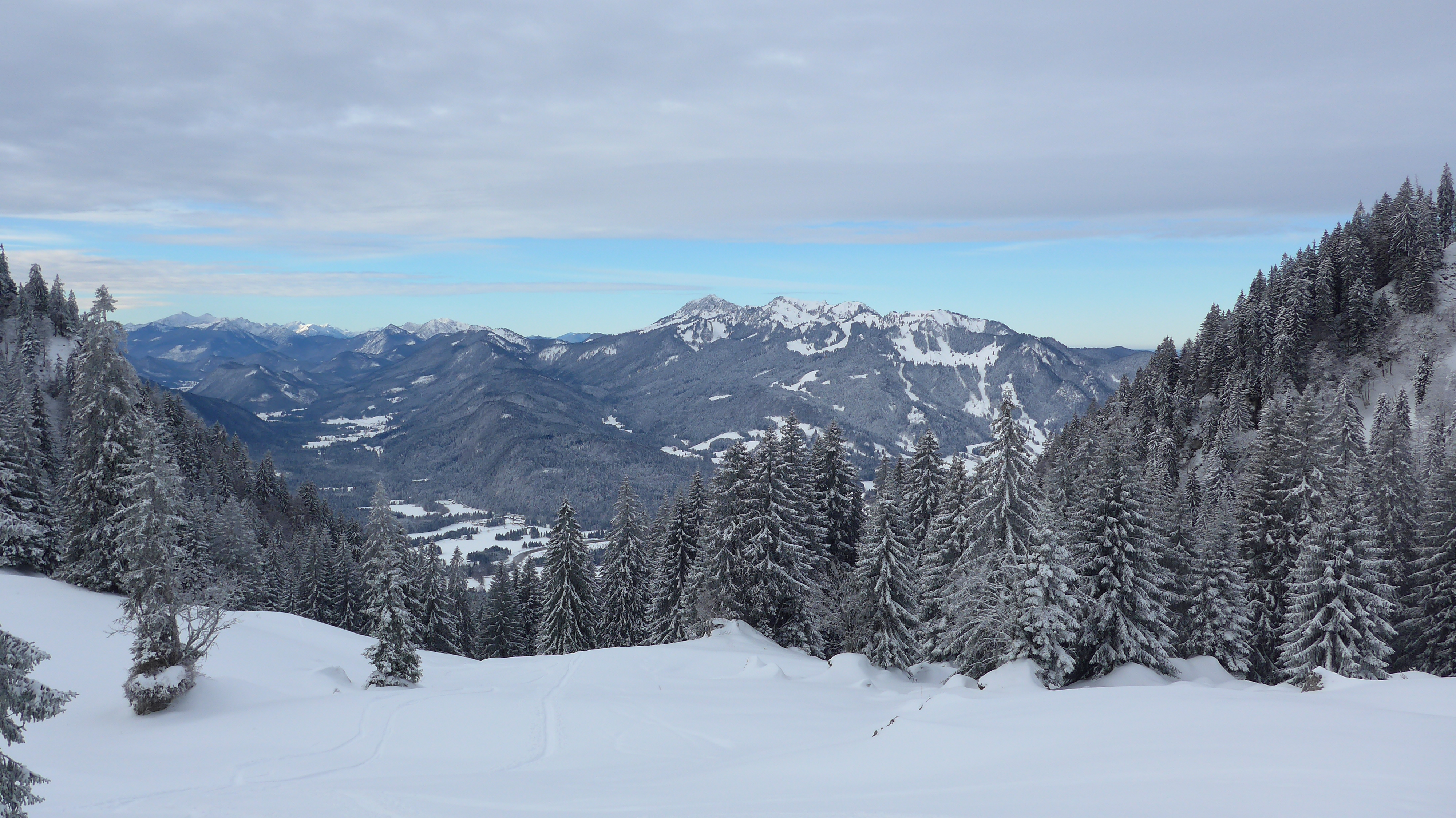 Tourenverhältnisse: Ich dachte, dass ich wohl die Forststraße ein Stücken tragen werden muss. Tour, wie in AV Karte eingezeichnet gegangen. Im Tal hat es 5 cm, im Gipfelbereich 15 cm Neuschnee gegeben. Für den Aufstieg hat allemal gereicht!