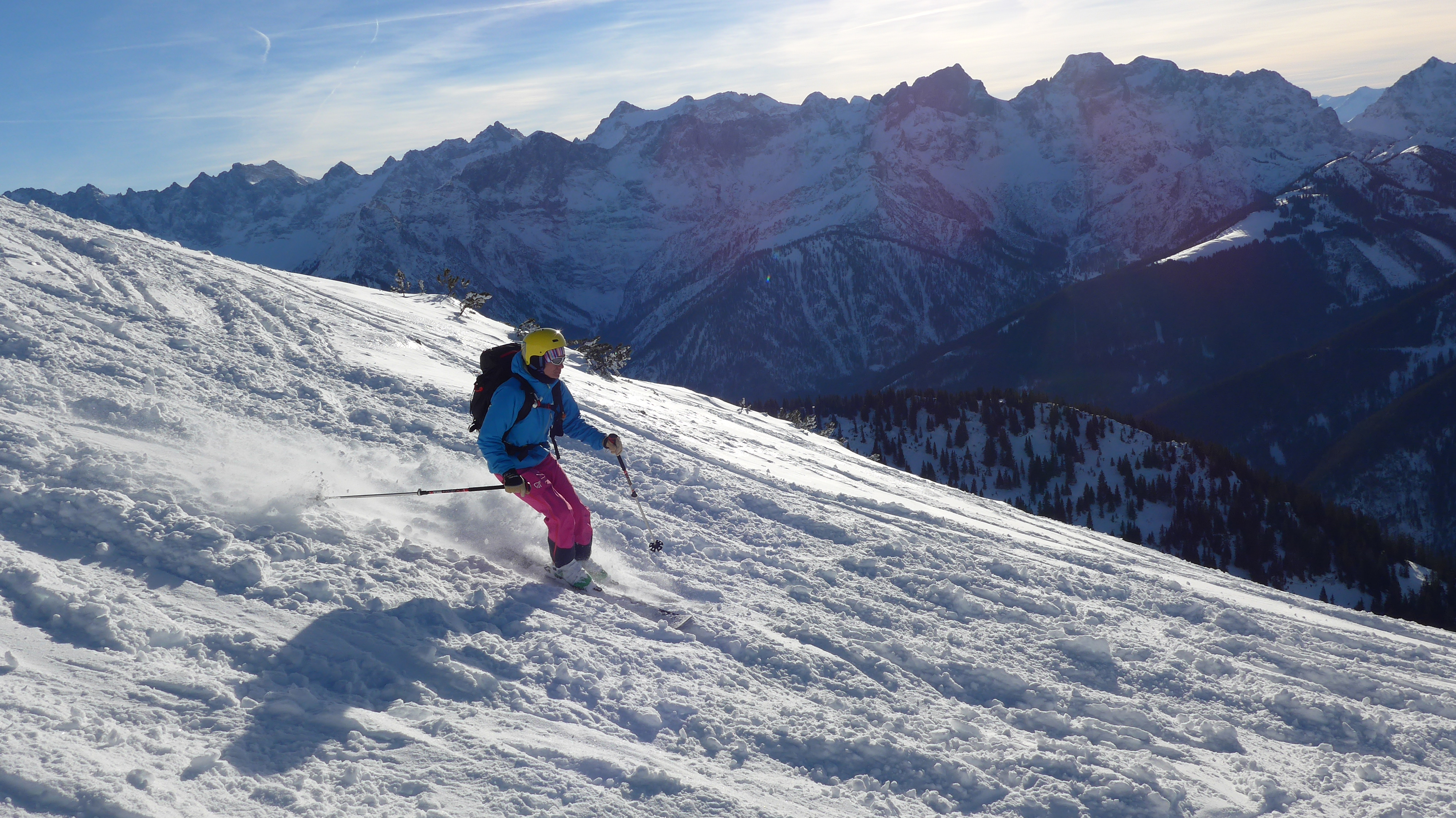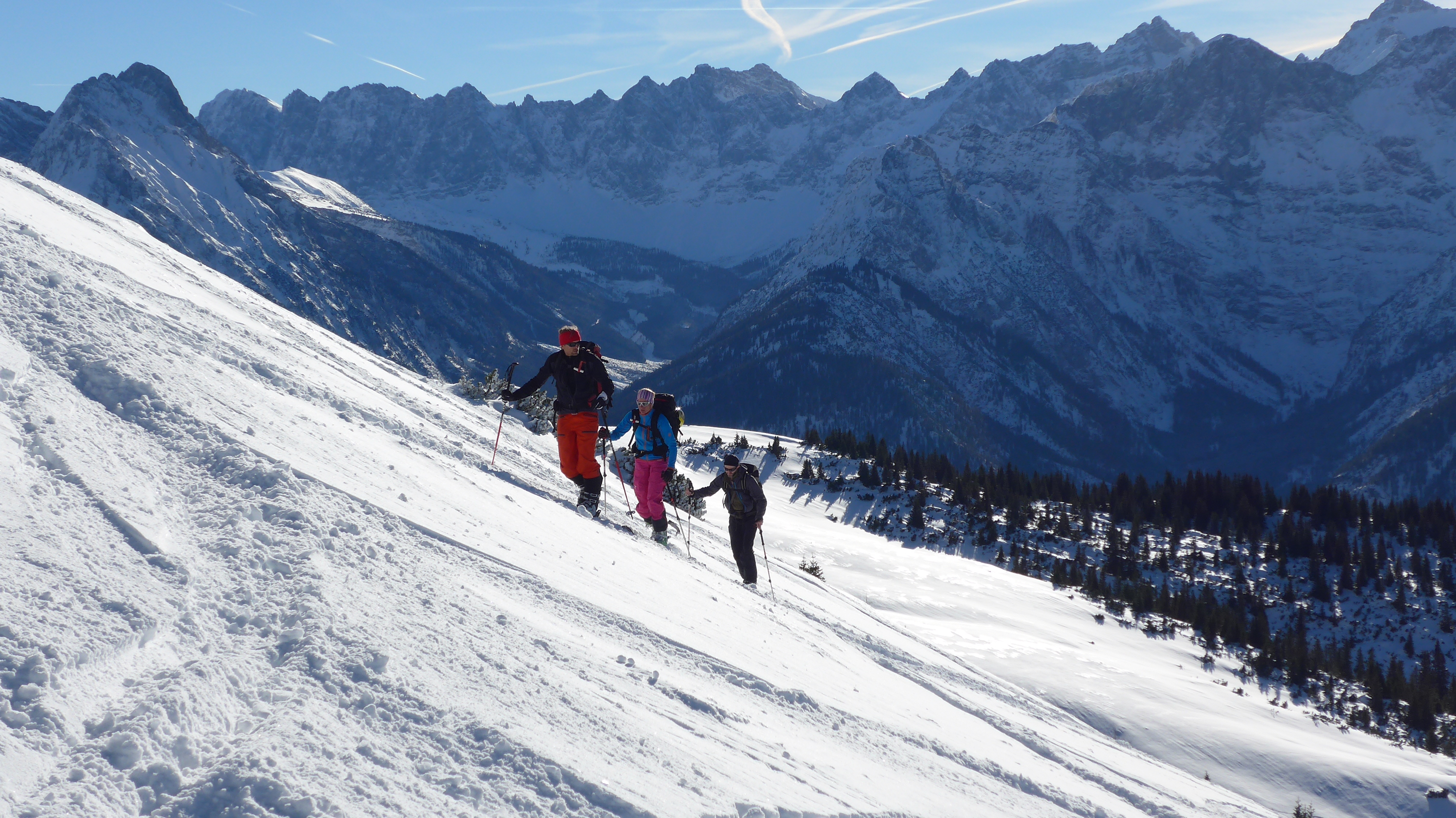 Tourenverhältnisse: Hier im Karwendel hat es etwas mehr Schnee, als gestern am Schönberg. Allerdings wurde der Schafreiter auch deutlich mehr befahren.