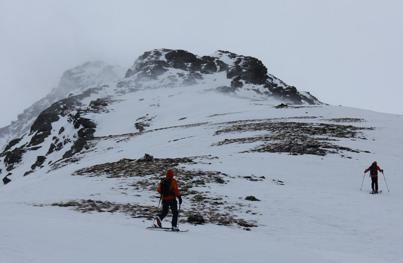 Darüber ebenfalls wenig Schnee aber in Mulden durchaus guter Pulver zu finden. Ganz oben sind die Rücken extrem abfgeblase, was dazu verleitet in eingewehte Mulden zu fahren. Hierbei ist große Vorsicht geboten. Am Hirzer war Triebschnee gestern aber kein Problem.