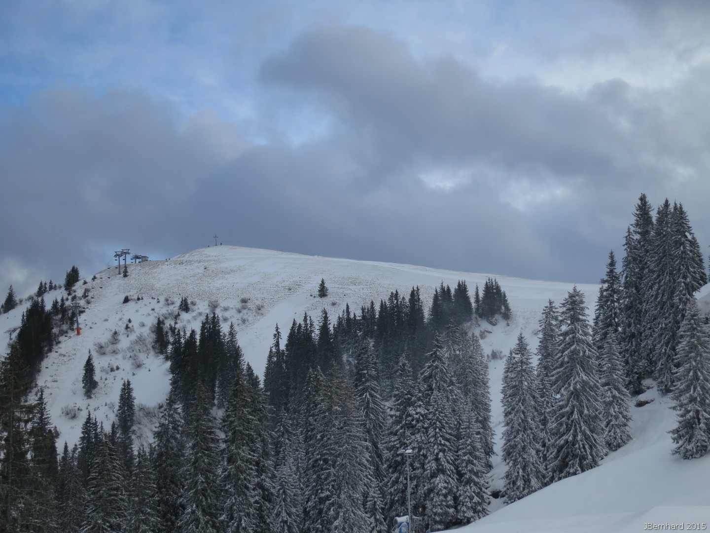 Die Osthänge haben heute nachmittag viel leicht windgepreßten Pulverschnee geboten, die Abfahrt auf der Piste war sehr genußreich.