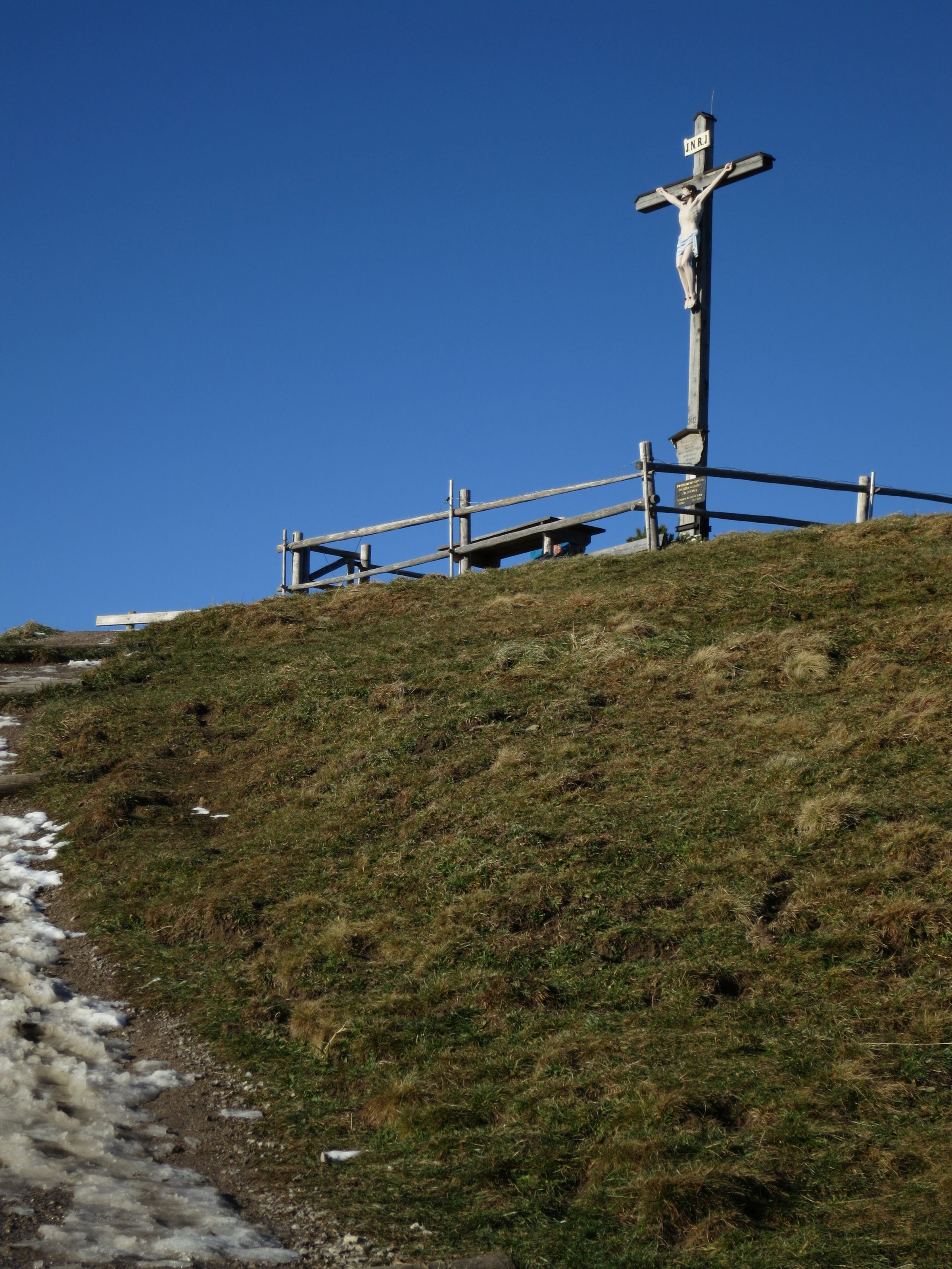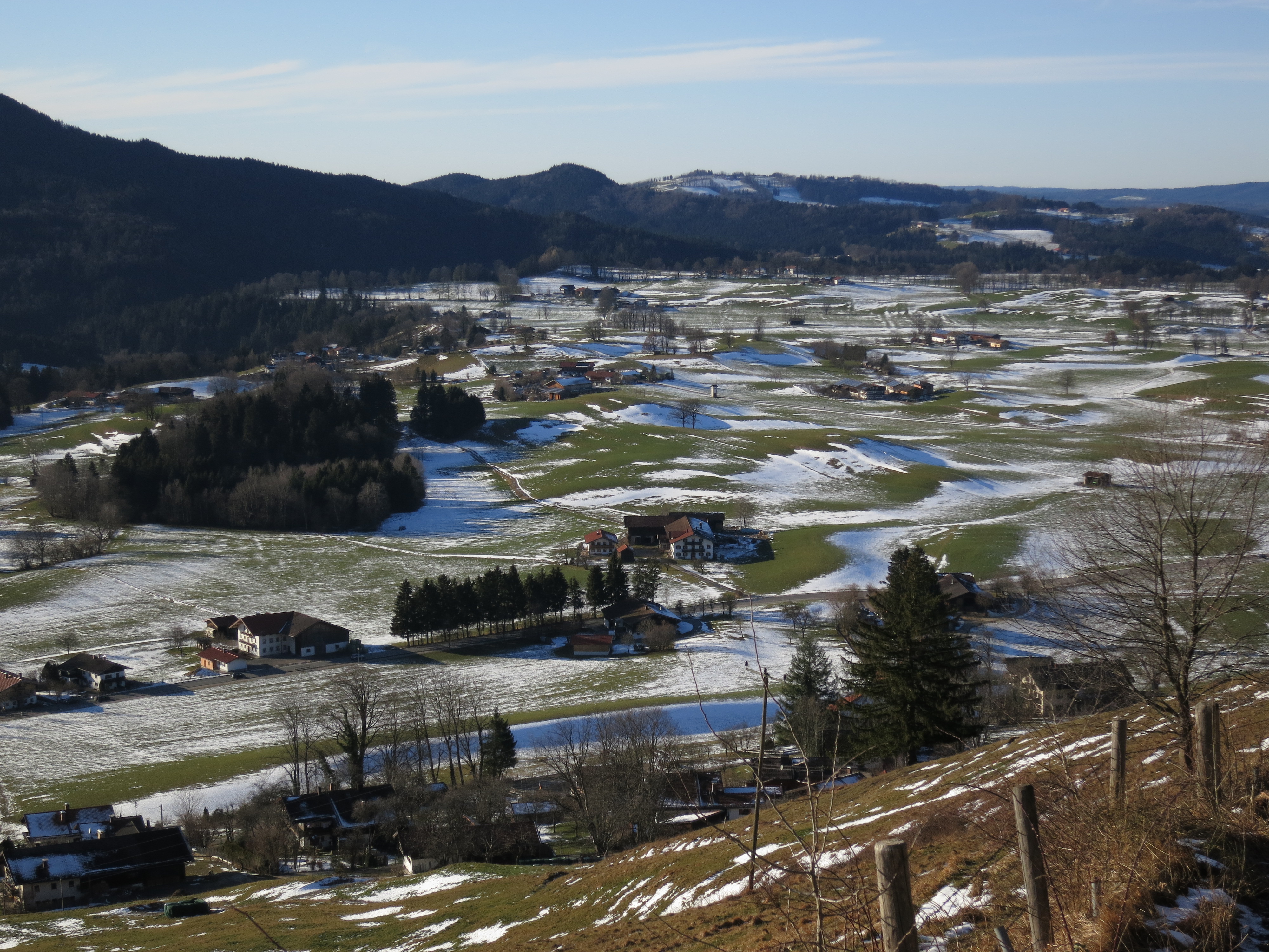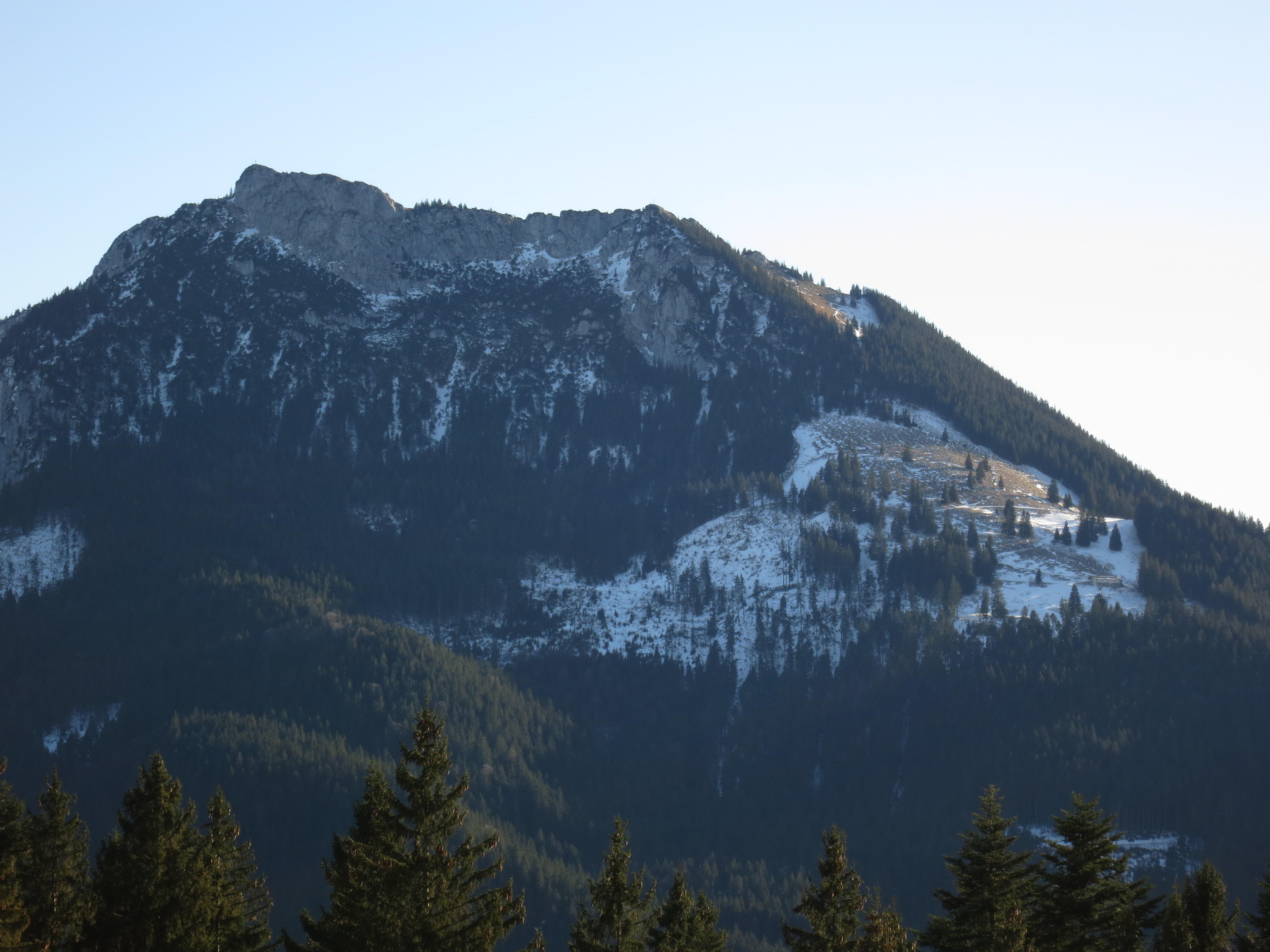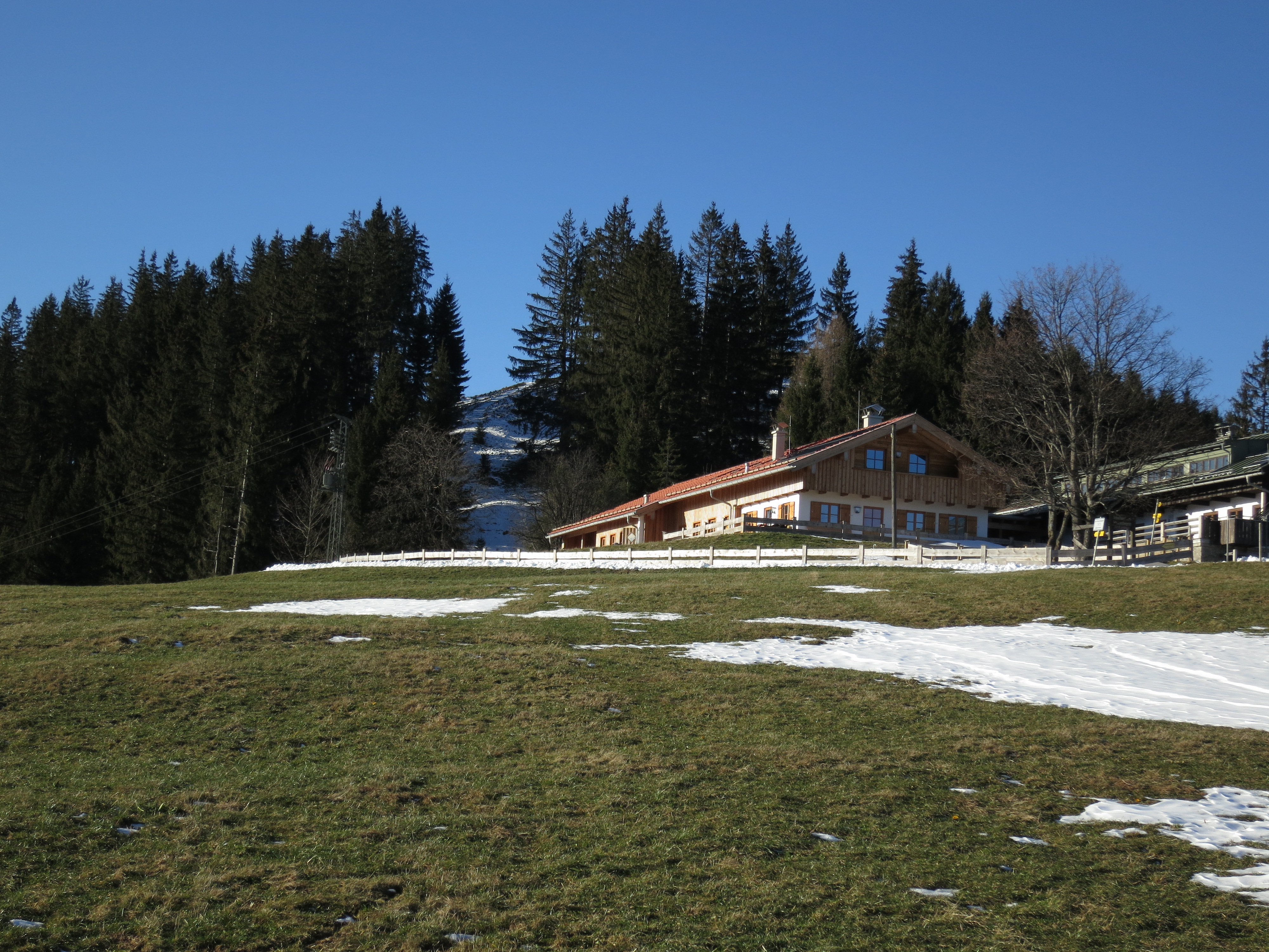 Tourenverhältnisse: Der Aufstieg über die Forststraße ist so gut wie schneefrei, vom Abzweig zum Schullandheim waren die Wiesenhänge bereits etwas batzig. Vom Schullandheim zum Gipfel lag etwas Schnee (Bild 2). Insgesamt alles gut zu gehen. Am Gipfel war's windstaad und warm - wie im Frühling.