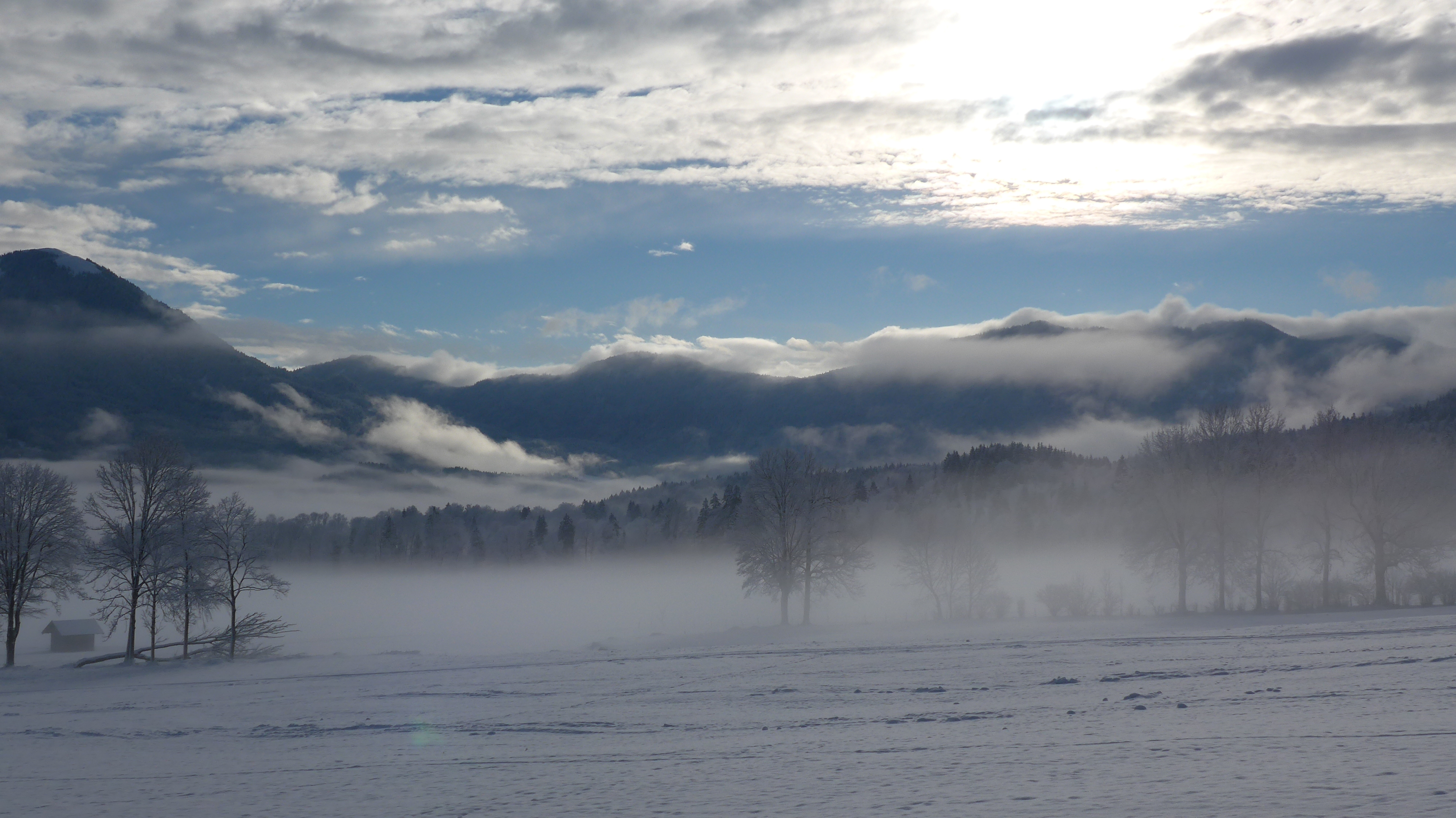 Bild 2: Am PP schöne Wolkenstimmung. Lenggries blieb heute fast den ganzen Tag im Nebel.