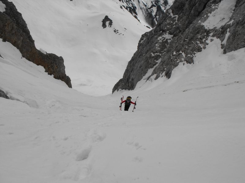 Tourenverhältnisse: Es war in der Nacht nicht sternenklar und deshalb war es Gott sein Dank nicht so extrem hart. Rote-Rinn-Scharte fast bis ganz oben mit Ski gegangen. Von Hinterbärenbad muss man 700 Höhenmeter die Ski zur Pyramidenspitze tragen. Letzte Woche war die Forststraße unter der Egersgrinn noch fahrbar, jetzt muss man aber komplett tragen.