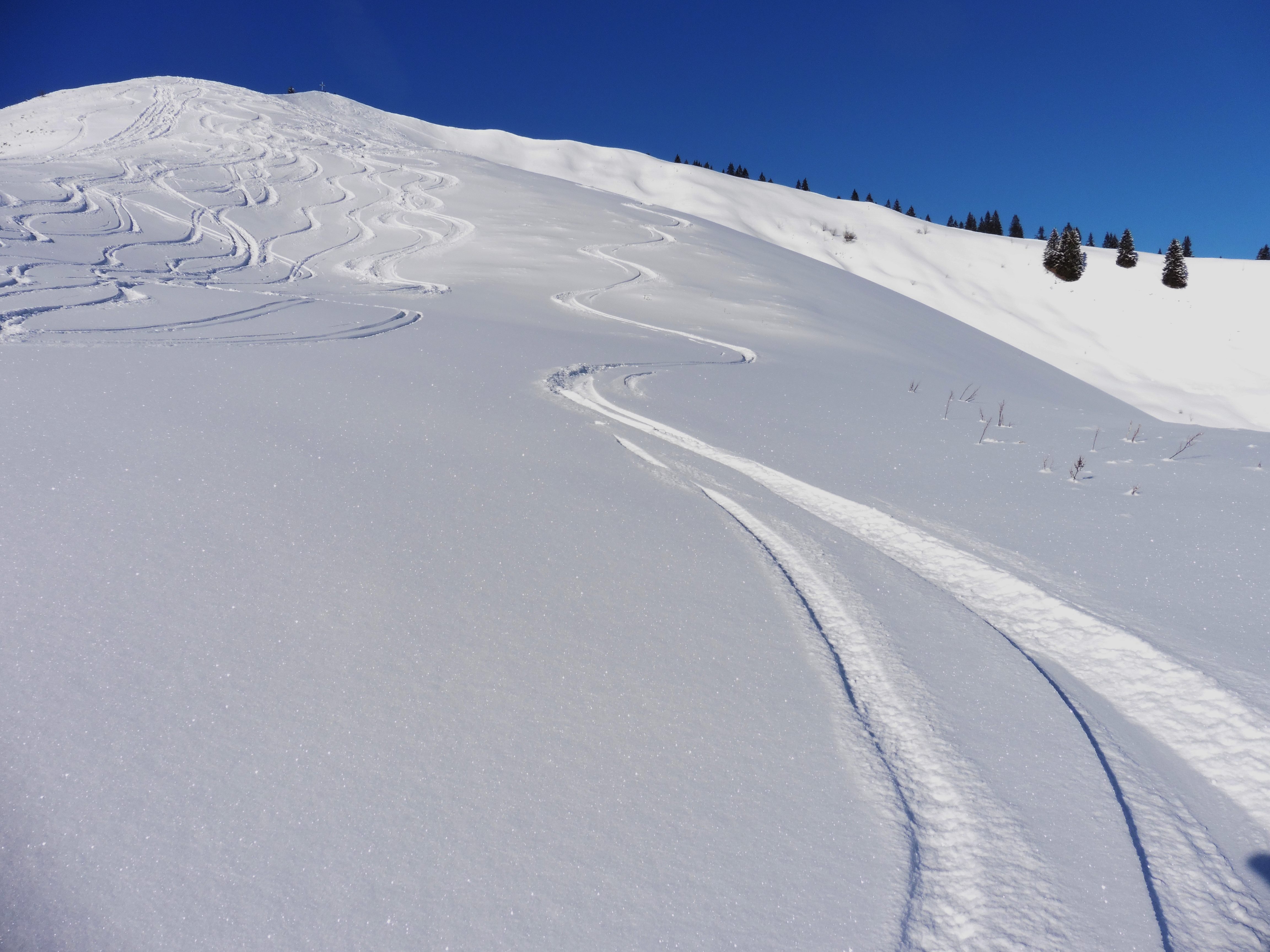 Tourenverhältnisse: gemessen an dem derzeitigen Schneemangel - ausgezeichnet ! Pulverschnee, keine Steine;