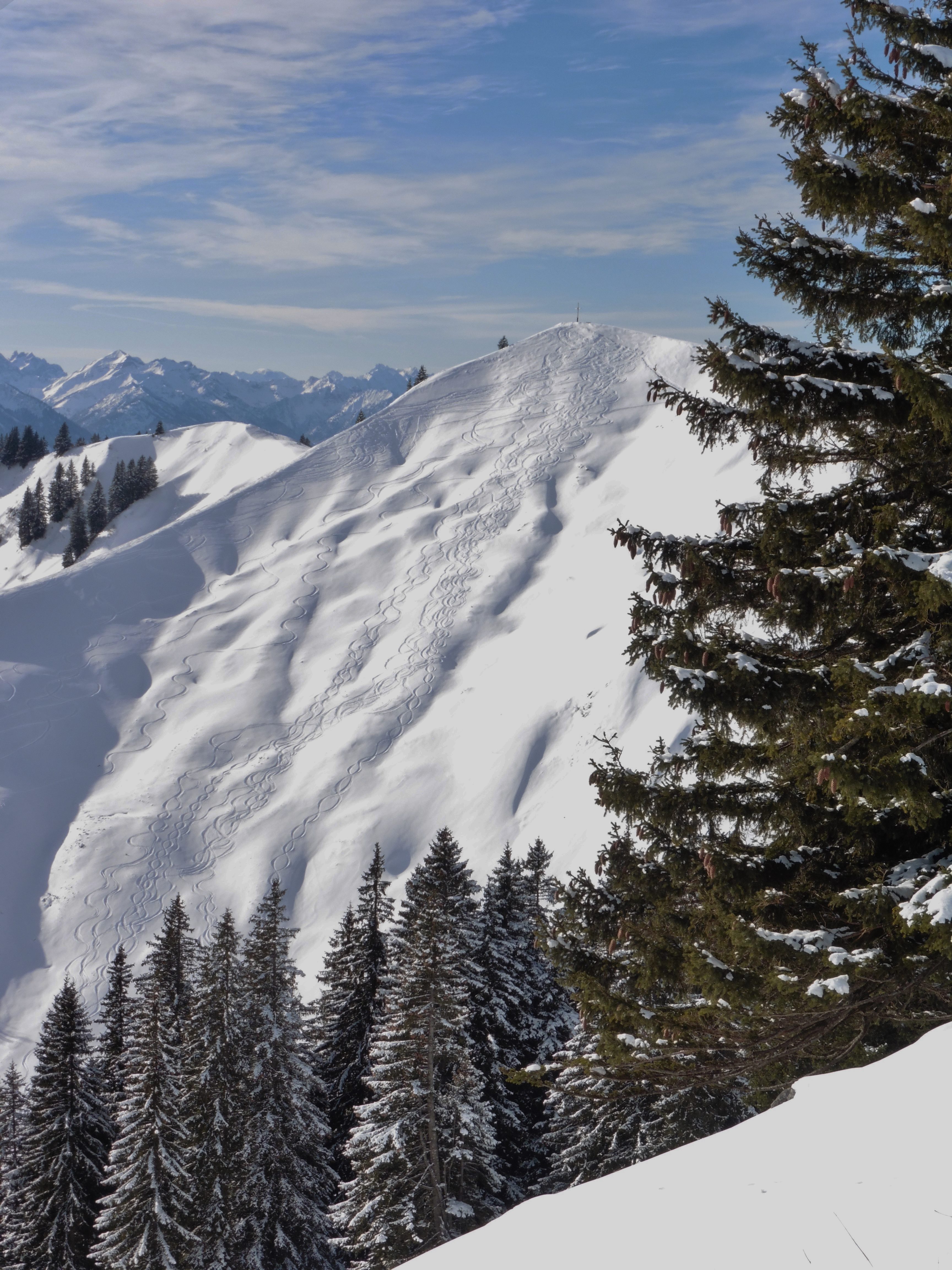 Sonstiges: vom Parkplatz (Tageskarte 3 Euro) auf der Forststraße zur Schwarztennalm und noch einige Minuten weiter (kurz bevor die Straße zu fallen beginnt); hier links ab und entlang des Sommerwegs über die Rauhalm zum Gipfel; über den baumfreien, ideal geneigten Osthang wieder zur Rauhalm; noch einmal anfellen und wieder hinauf in den Sattel am Beginn des NO-Rückens des Seekarkreuzes; diesmal jedoch nach rechts und entlang des Grates zum Brandkopf; vom Gipfel über den O-Grat hinab in eine Einschartung vor dem Mühltaleck; von dort durch die - oben sehr steile S-Flanke (in diesem Bereich war der Schnee schon sehr stark durchfeuchtet) hinunter zur Aufstiegsroute und auf dieser zur Schwarztennalm. Auf der heute leicht vereisten Straße in wenigen Minuten zum Parkplatz. Die Schwarztennalm ist bewirtschaftet (Mittwoch und Donnerstag - Ruhetag); auch die Buchsteinhütte ist geöffnet (Montag und Dienstag - Ruhetag);