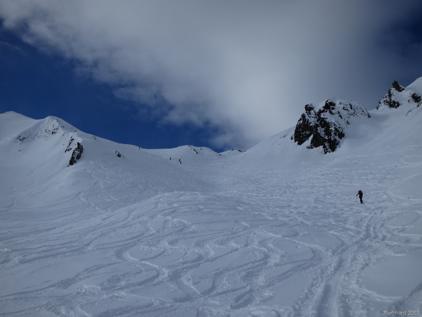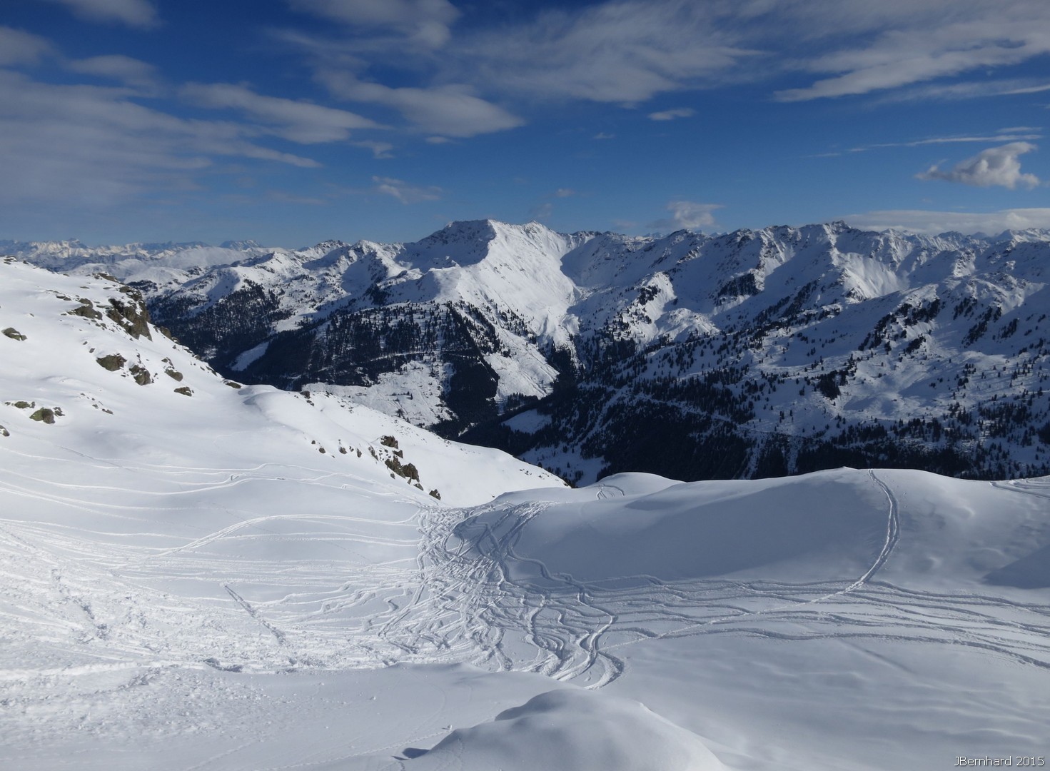 Diese Tour ist immer noch ein Genuß. Insbesondere die Hänge oberhalb der Seefeldalm bieten noch herrlichen Pulver, obwohl schon recht verspurt.