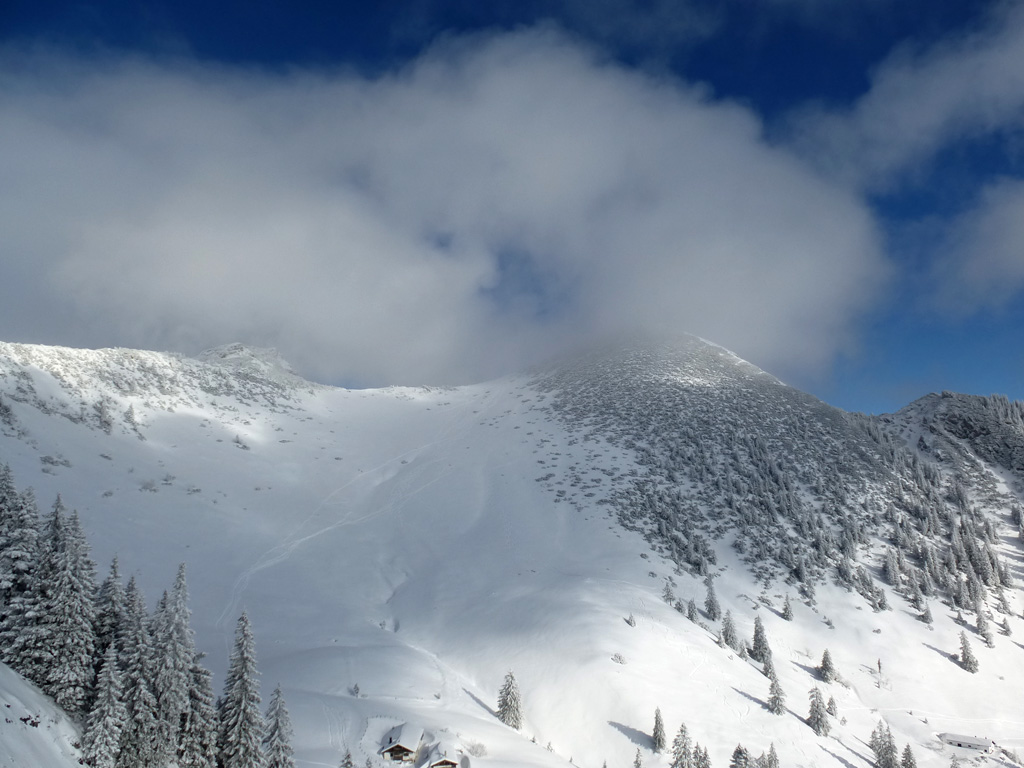 Klassisch ab dem großen Parkplatz bei Sachrang über die Forststraße bis zum Judensee, dort den ersten Abkürzer und weiter auf der Forststraße bis zur Talalm. Diese queren und dann weiter Forststraße bis zum höchsten Punkt ca. 800 m vor der PH. Dort links weg in Richtung Bergwachthütte, weiter zur Oberkaseralm (die Marie lebt wohl auch diesen Winter glücklich dort