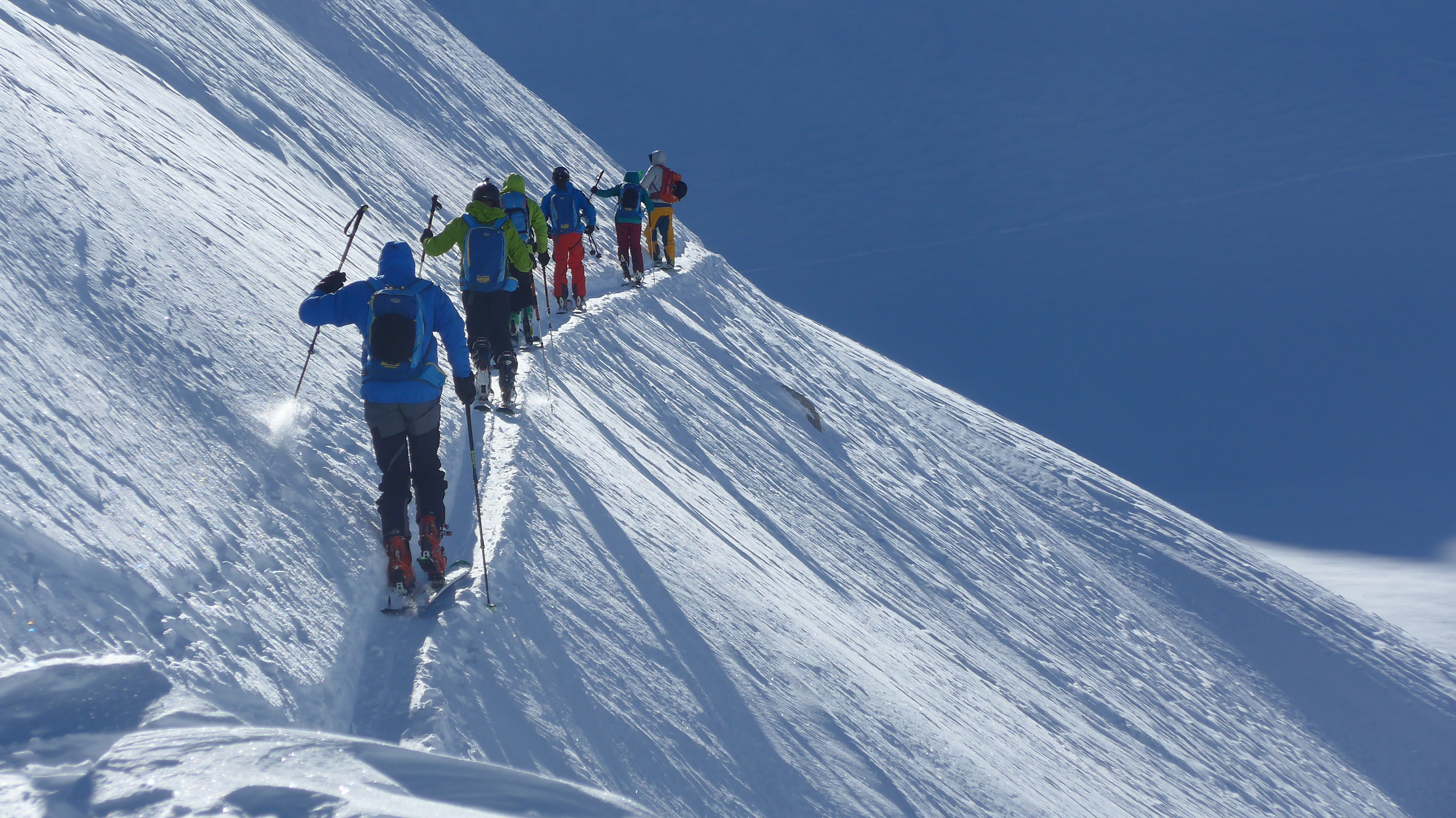 Dort strahlten wir uns alle wortlos an. Unberührte Hänge!