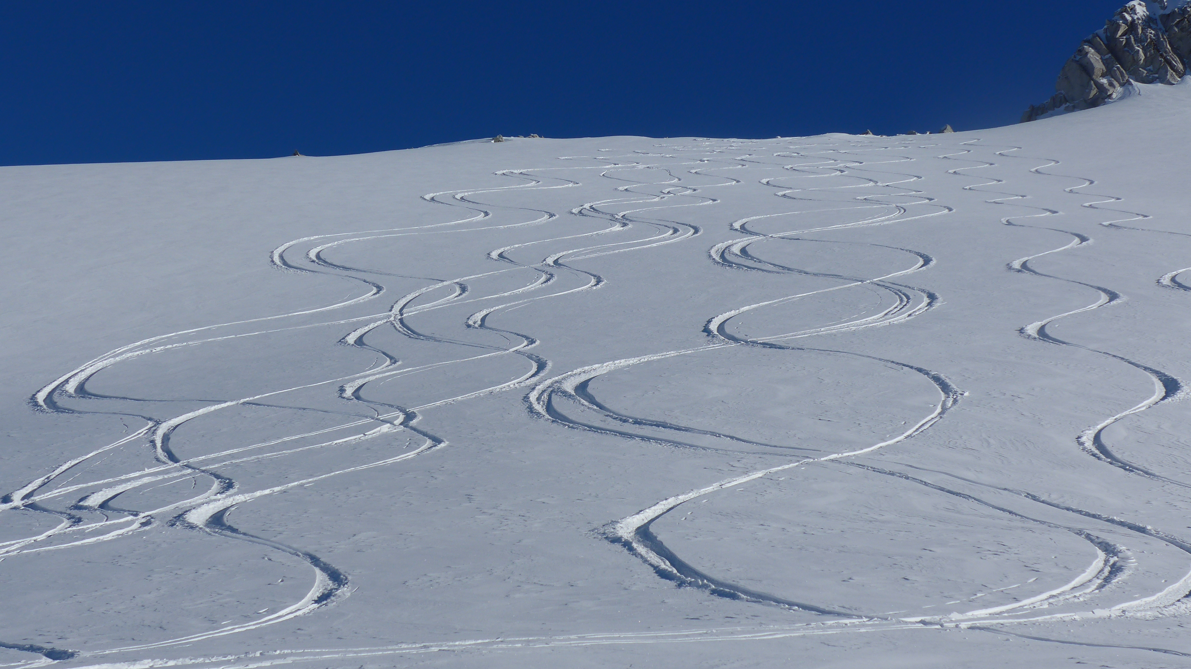 Am 24.1.15 mehrere Freeride Abfahrten im Val Presena gefahren. Feinster Pulver. Etwas mehr verspurt. Immer noch genussvoll!!
