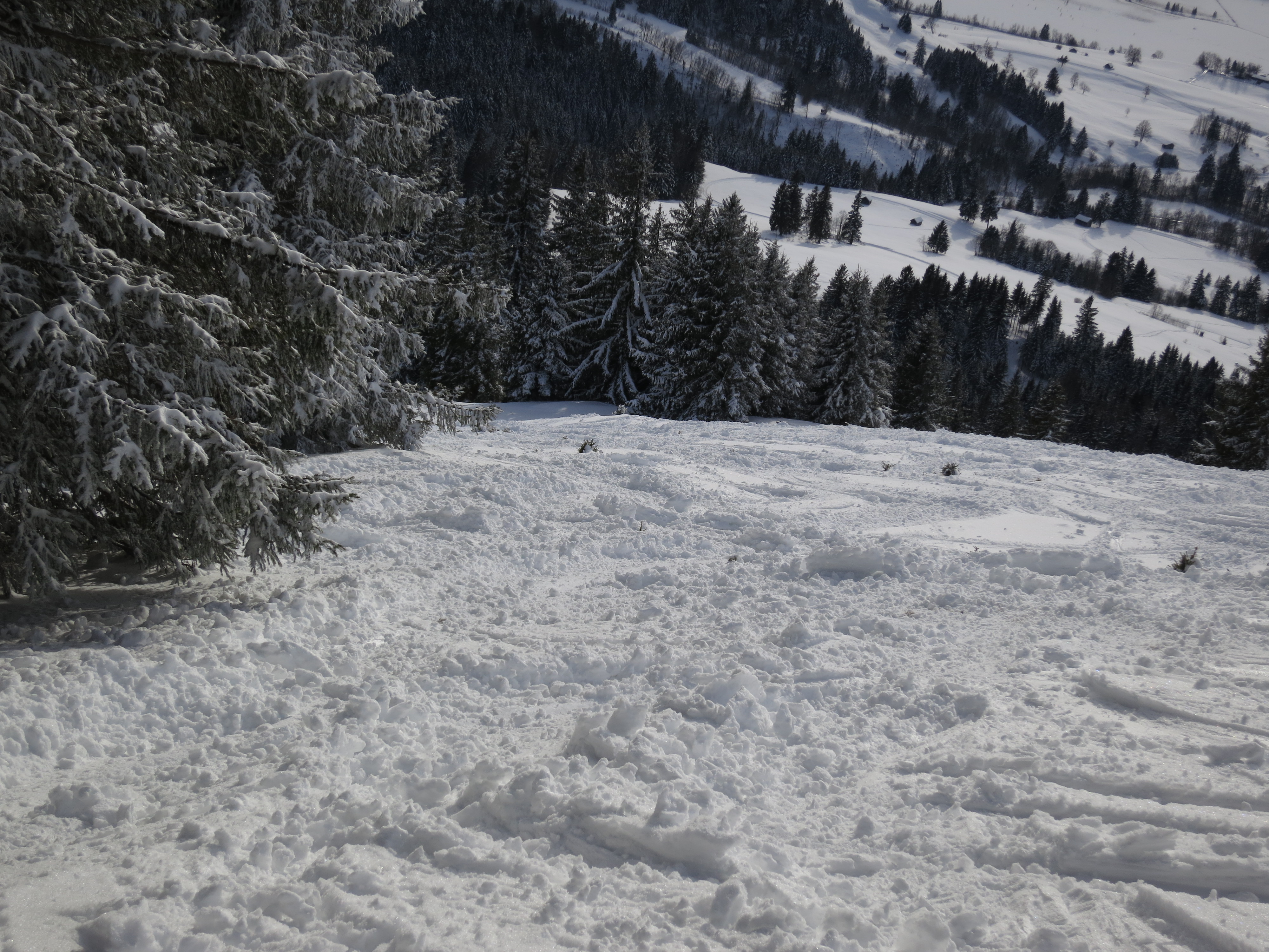 Prognose: Solange es kalt bleibt und immer wieder draufschneit geht es. Die Hänge apern schnell aus!