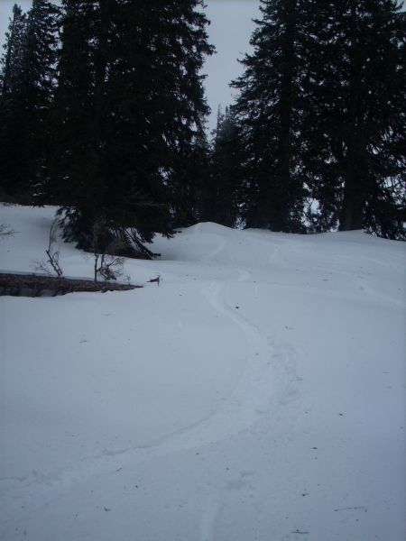 Tourenverhältnisse: vom Parkplatz weg möglich, Oberflächenharsch, Piste