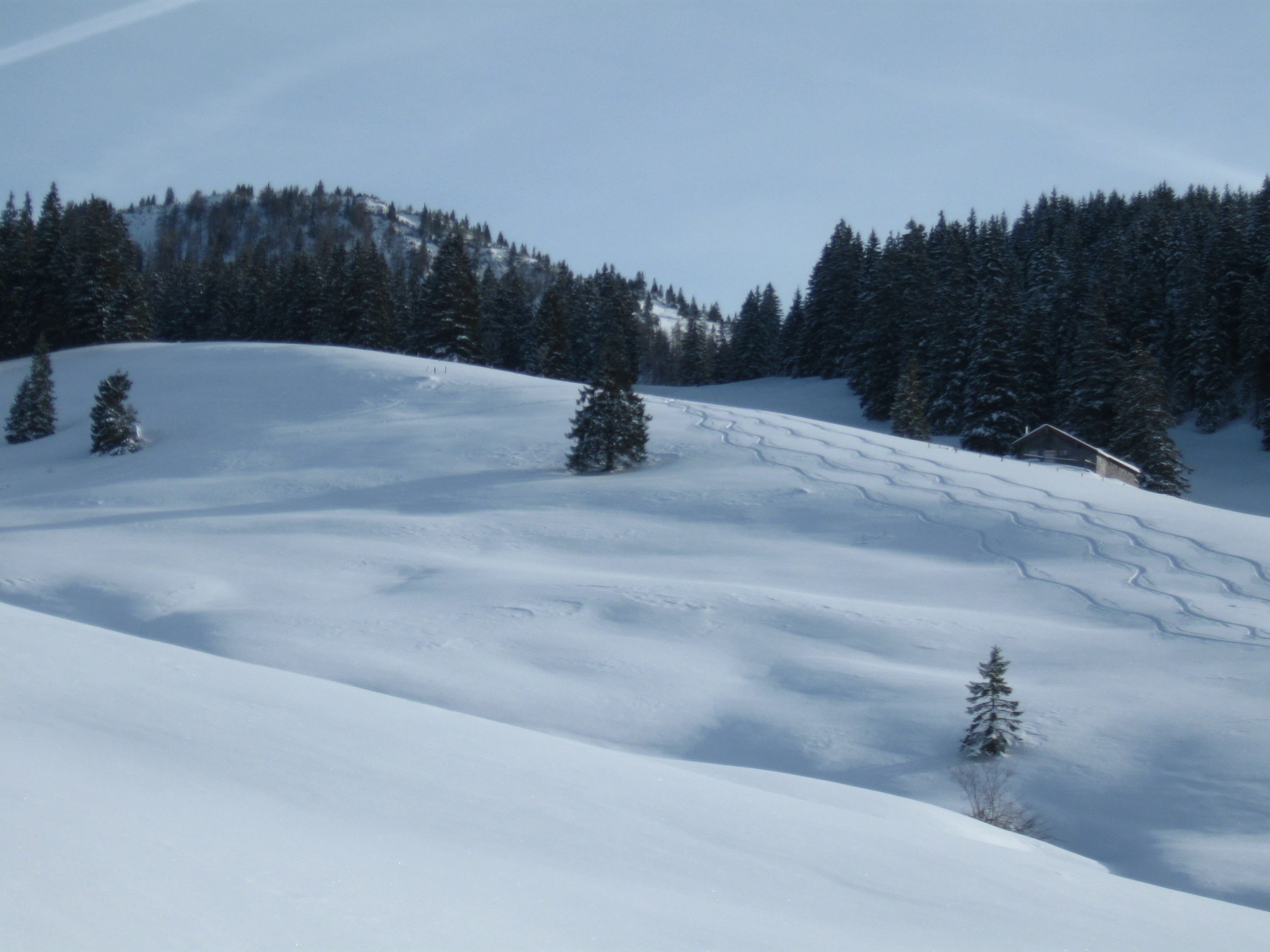 Sonstiges: Von Fall auf der Forststraße ins Dürrachtal, dann Abzweig über die Dürrach und entlang des Sommerwegs zur Lerchkogelalm-Niederleger. Weiter über den Hochleger und zum Gipfel (vgl Skiroute in der AV-Karte Vorkarwendel). Bester Pulver, Sonnenschein, sehr wenig los (außer uns fünf Leute). Skifahrerisch ist die Tour allerdings wegen des langen, flachen Teilstücks auf der Forststraße und den meist flachen Hängen eher unlohnend, dafür landschaftlich sehr schön und eben einsam.