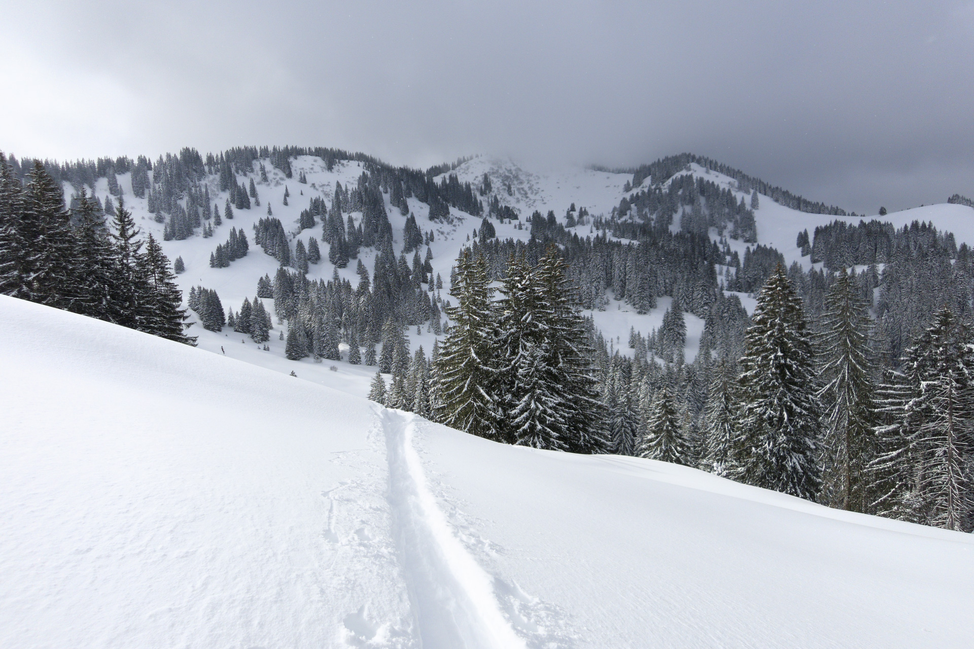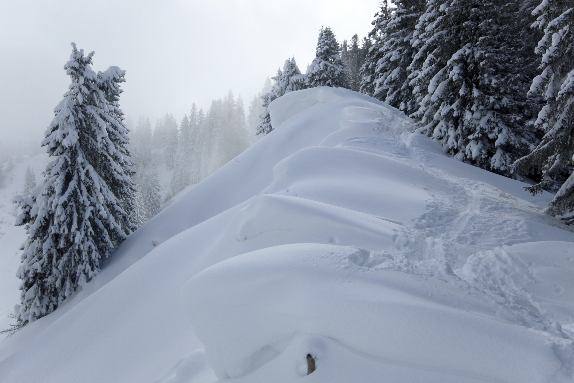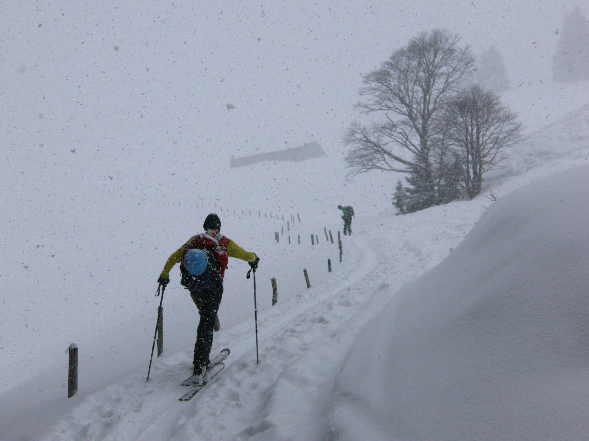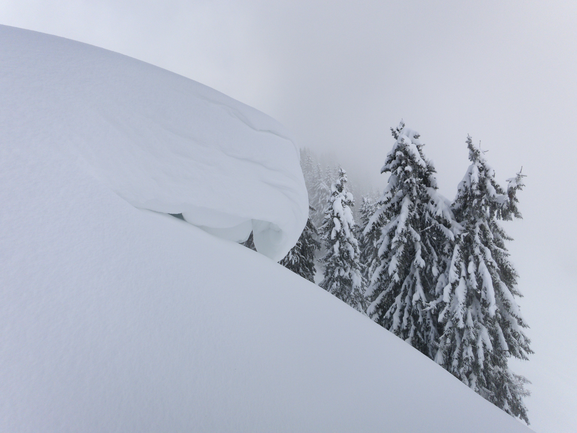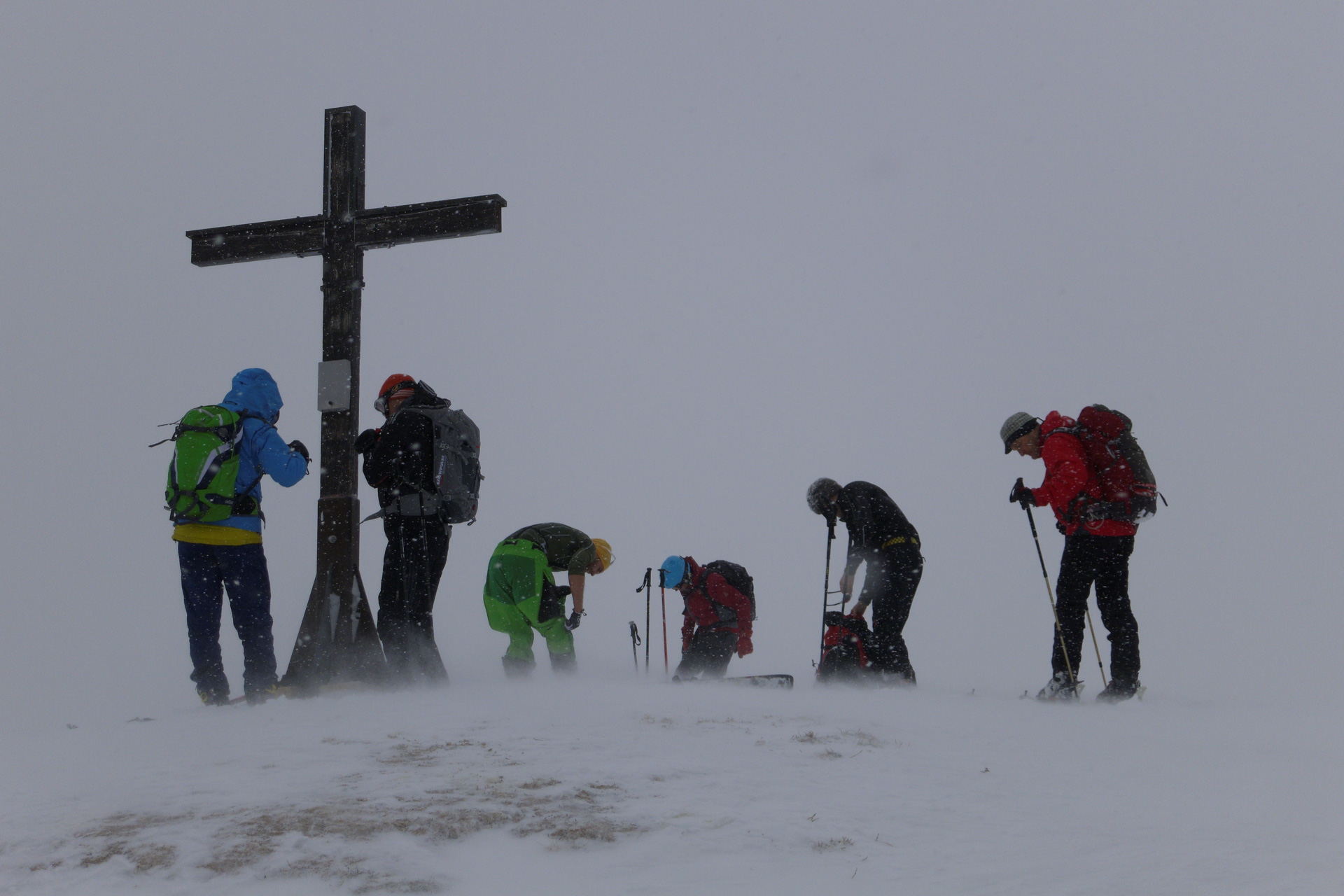 Wir sind von Sigiswang rauf (Parkplatz 2€), dann ca. 300hm auf der anderen Seite (westlich) runter bis Nähe Oberalpe. Auf der Westseite hat man den Windeinfluß mehr gemerkt. Oben am Grat abgeblasen, sehr große Wächten Lee, direkte Abfahrt in die Osthänge hätte ich nicht gemacht.