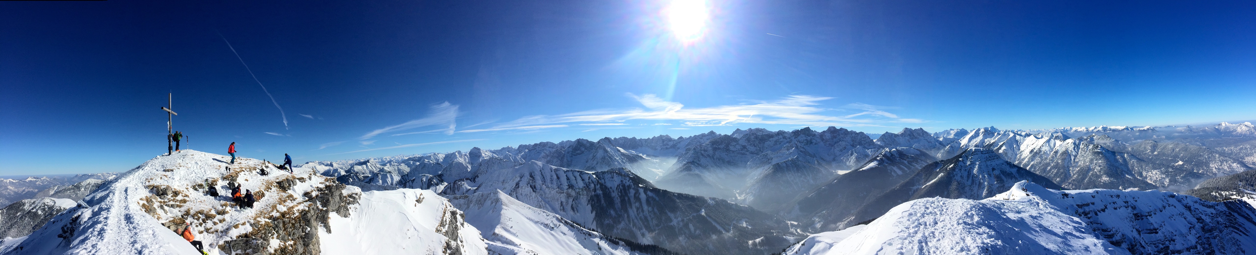 Sonstiges: Unweit der Grenzbrücke (840m) Richtung SO in den lichten Wald hinein. Bald denn von der Oswaldhütte heraufkommenden Weg querend weiter Richtung SO bis man auf 940m wieder auf diesen Weg stößt. Jetzt auf dem Forstweg in einigen Kehren bis zur Hinweistafel auf 1350m, wo man geradeaus Richtung OSO den Waldgürtel auf die freie Lichtung bei der Mooslahner Alm (1360m) quert. Dieser Lichtung folgend aufwärts bis man auf 1620m nach S auf den zum Gipfel führenden Rücken quert. Nach 200m Richtung W durch Latschen auf den Nordwestrücken, den man bei 1900m erreicht. Diesen entlang zum Gipfel (2102m).Runter wie rauf, anschließend in die Post in Vorderriß auf einen Schweinsbraten.