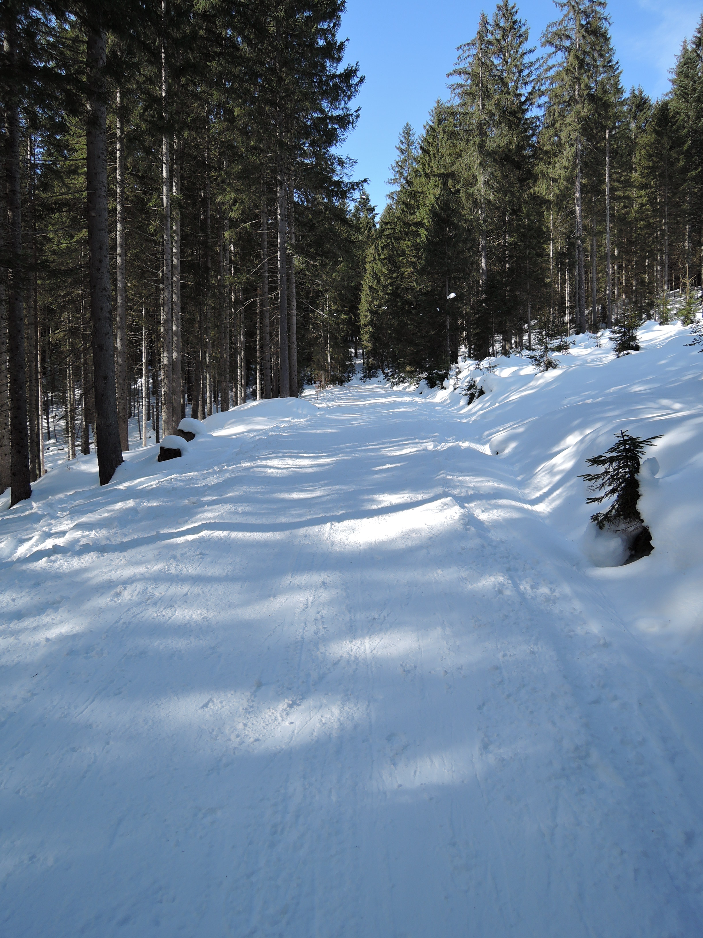 Die Schneehöhe ist vom Parkplatz weg ausgezeichnet. Selbst der Steig durch