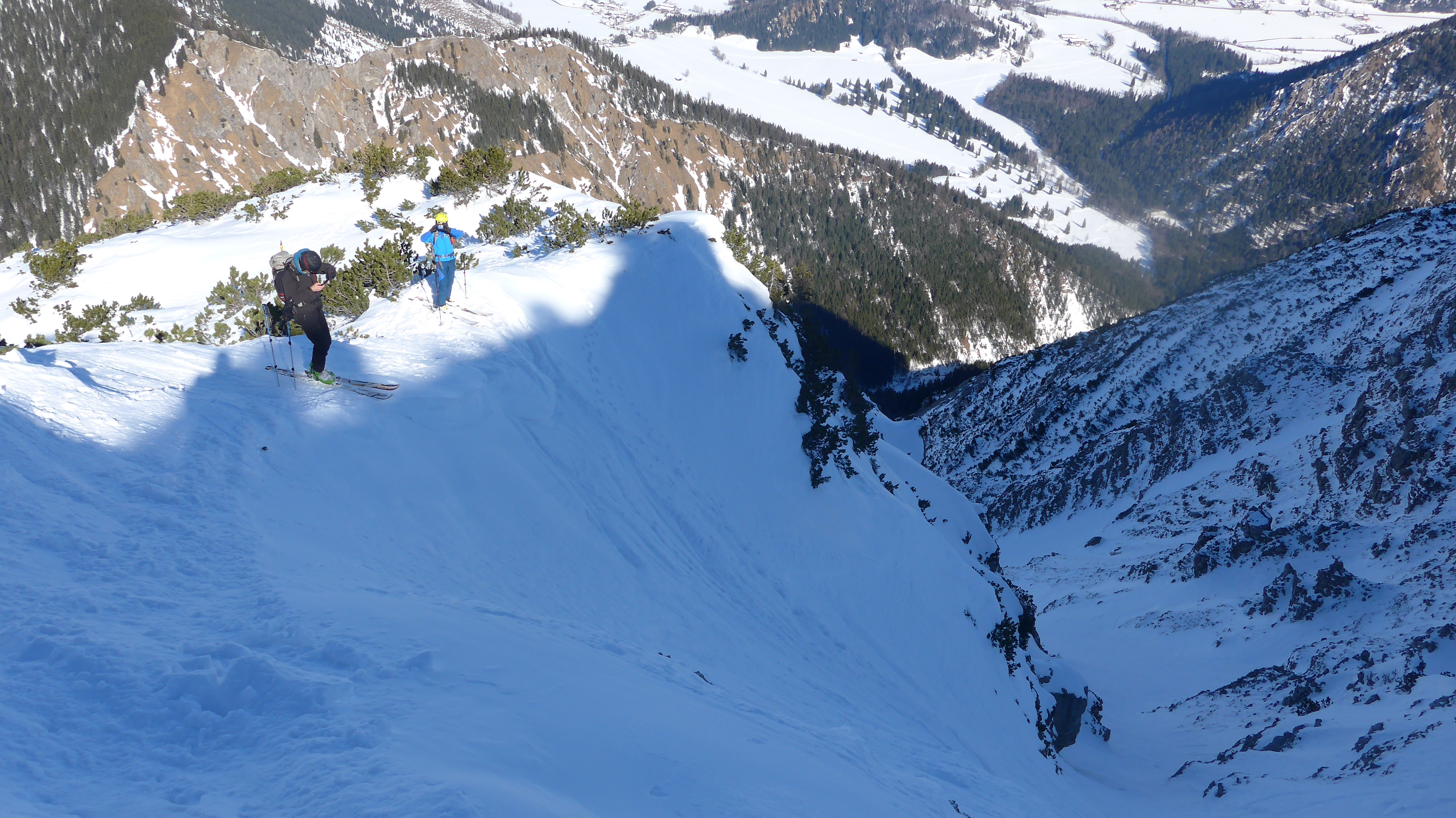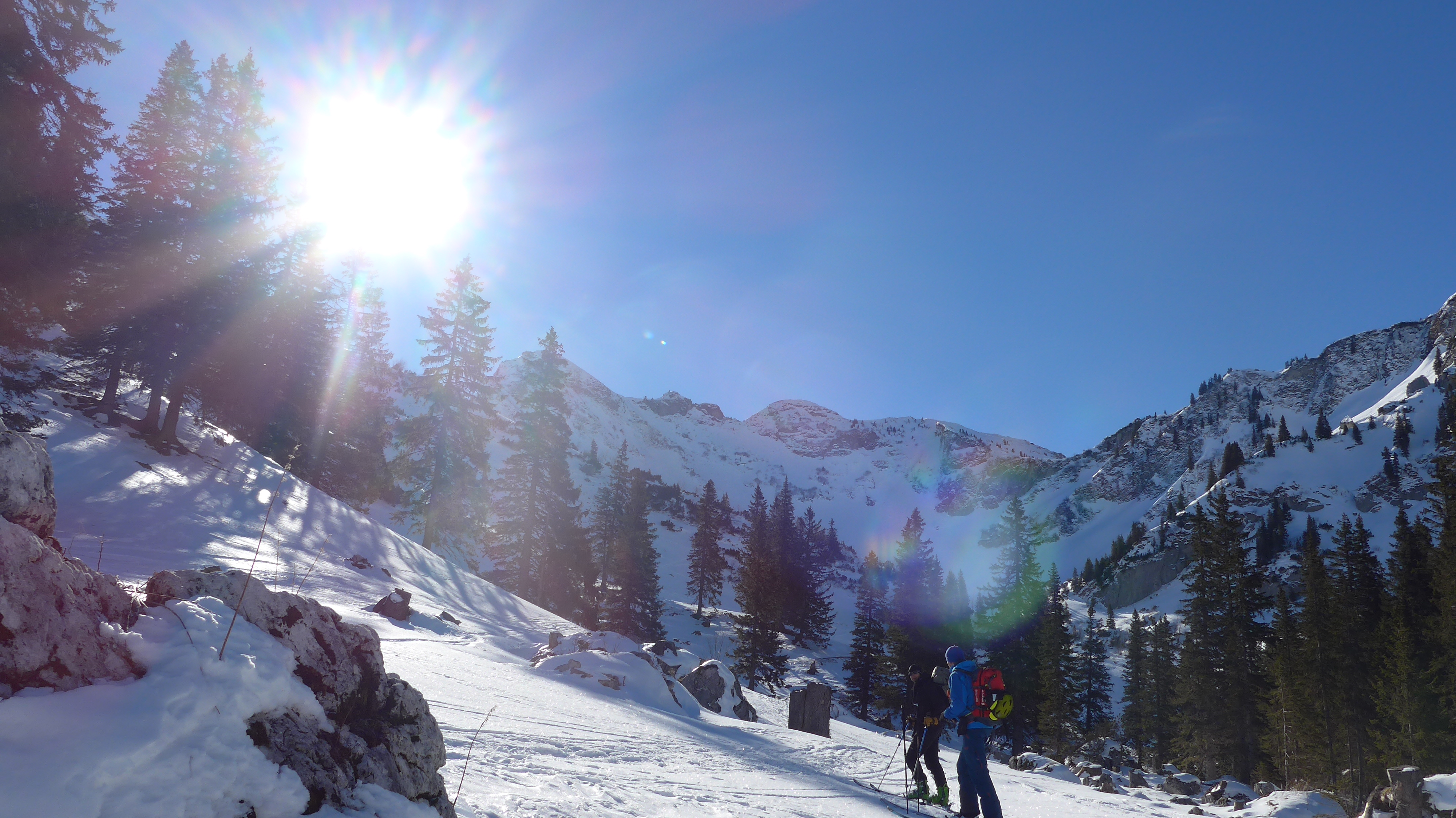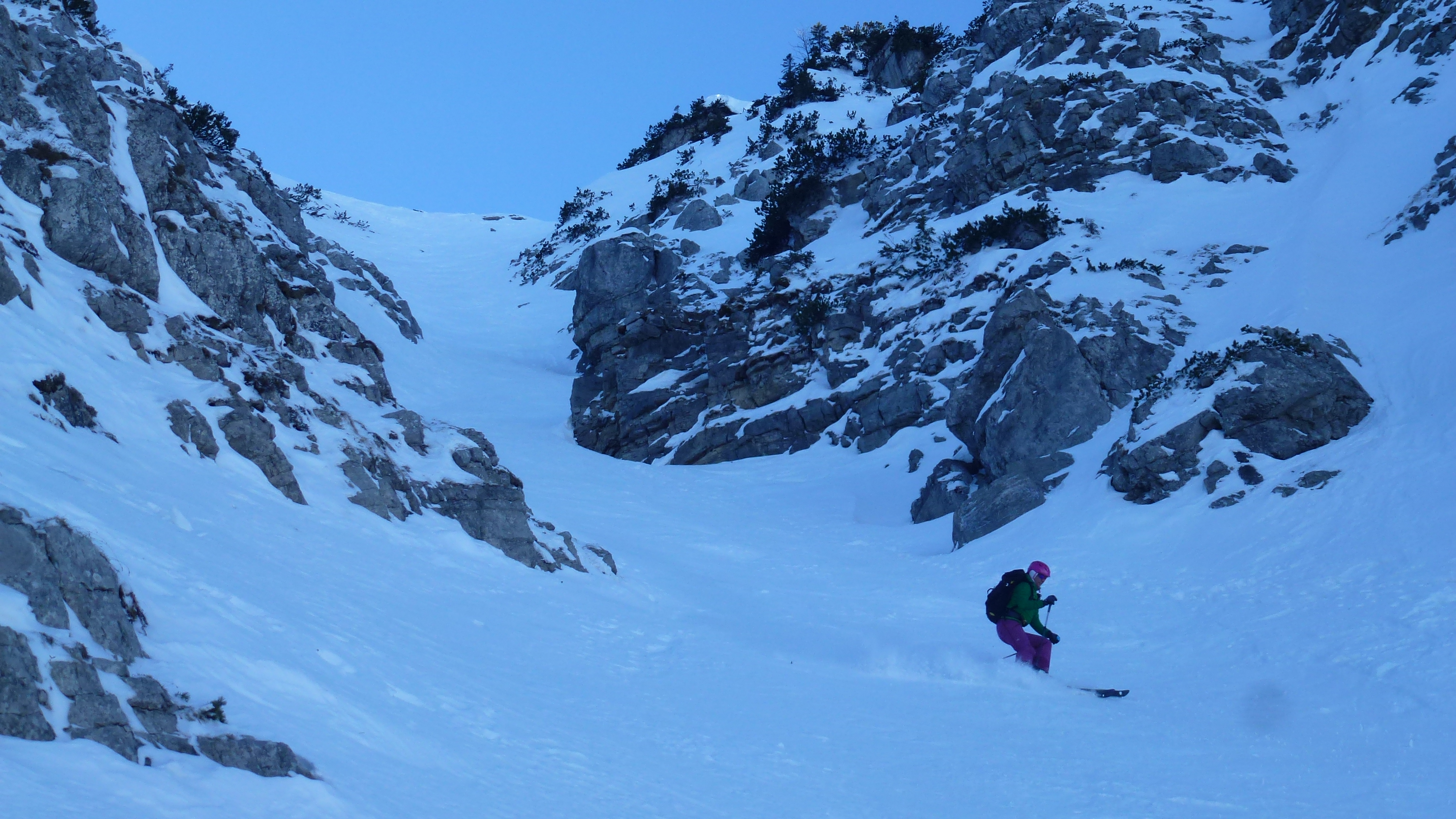 Oben vereinzelt Steine. Zwei Skitourler dort im Aufstieg gesehen.
