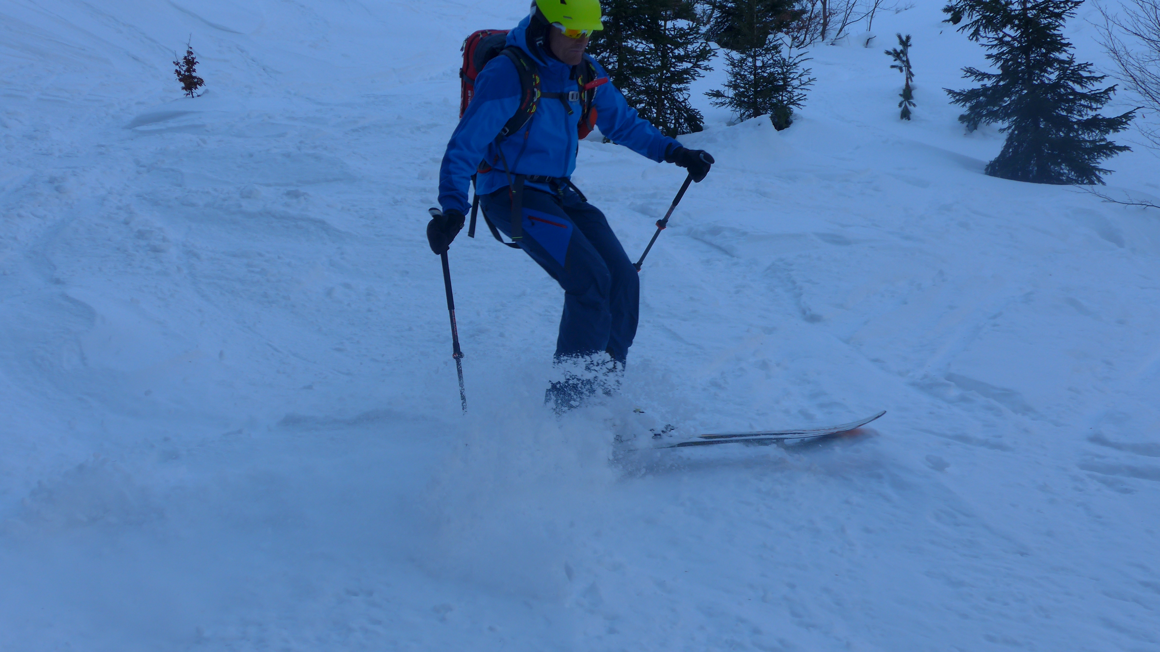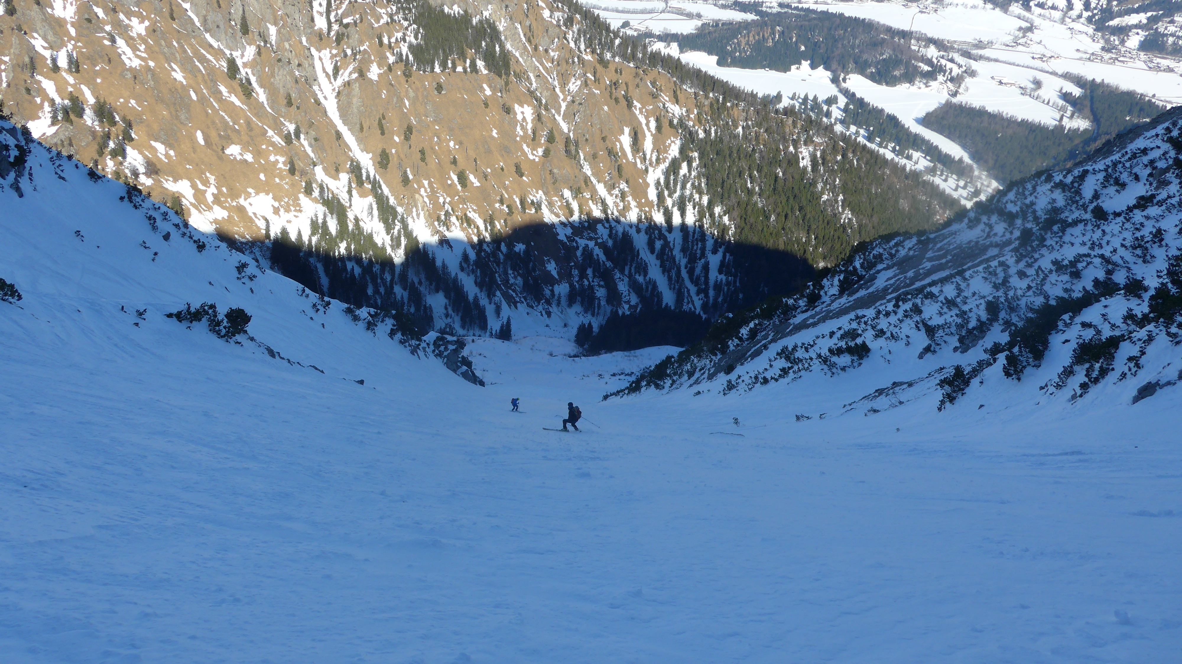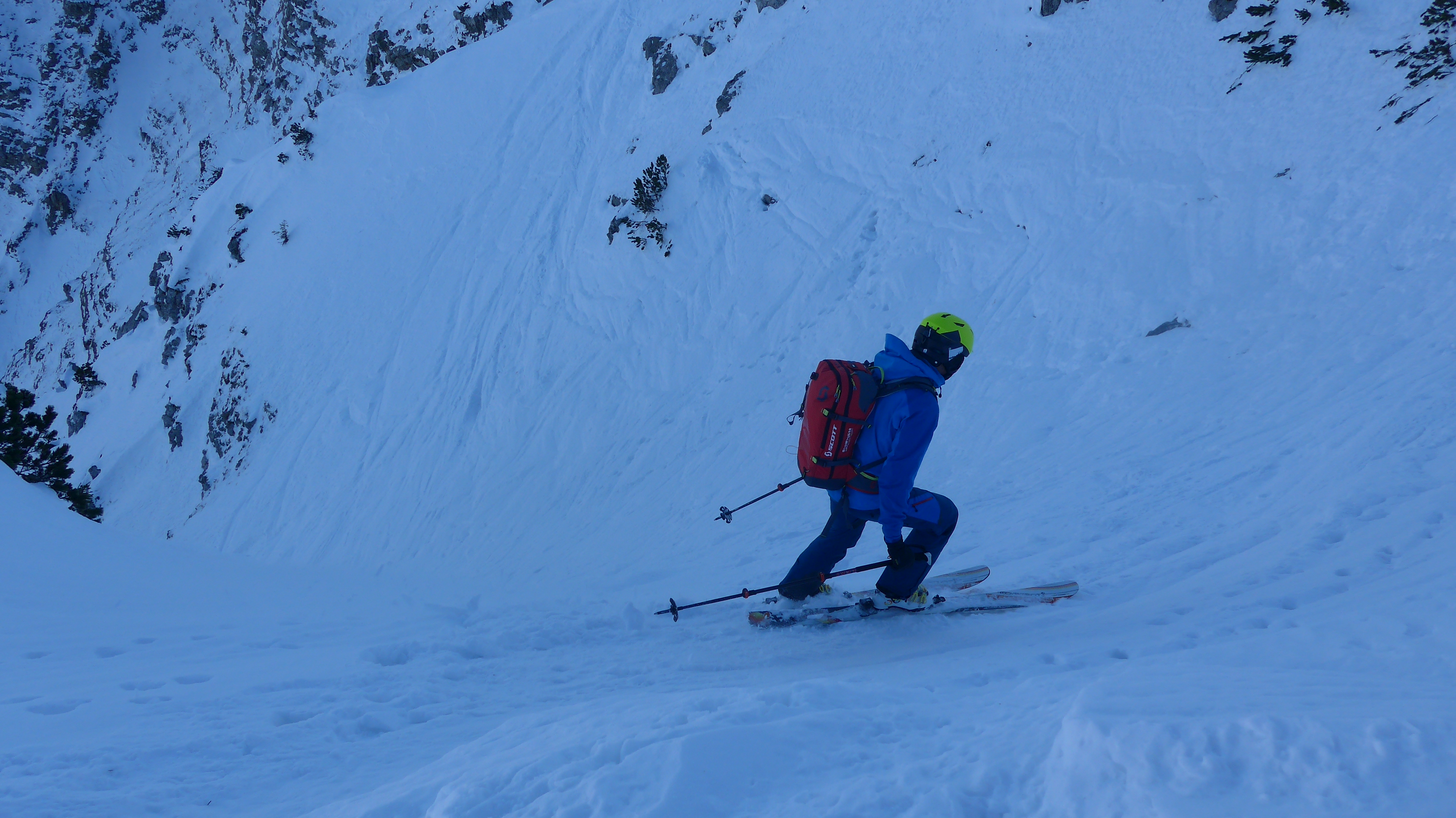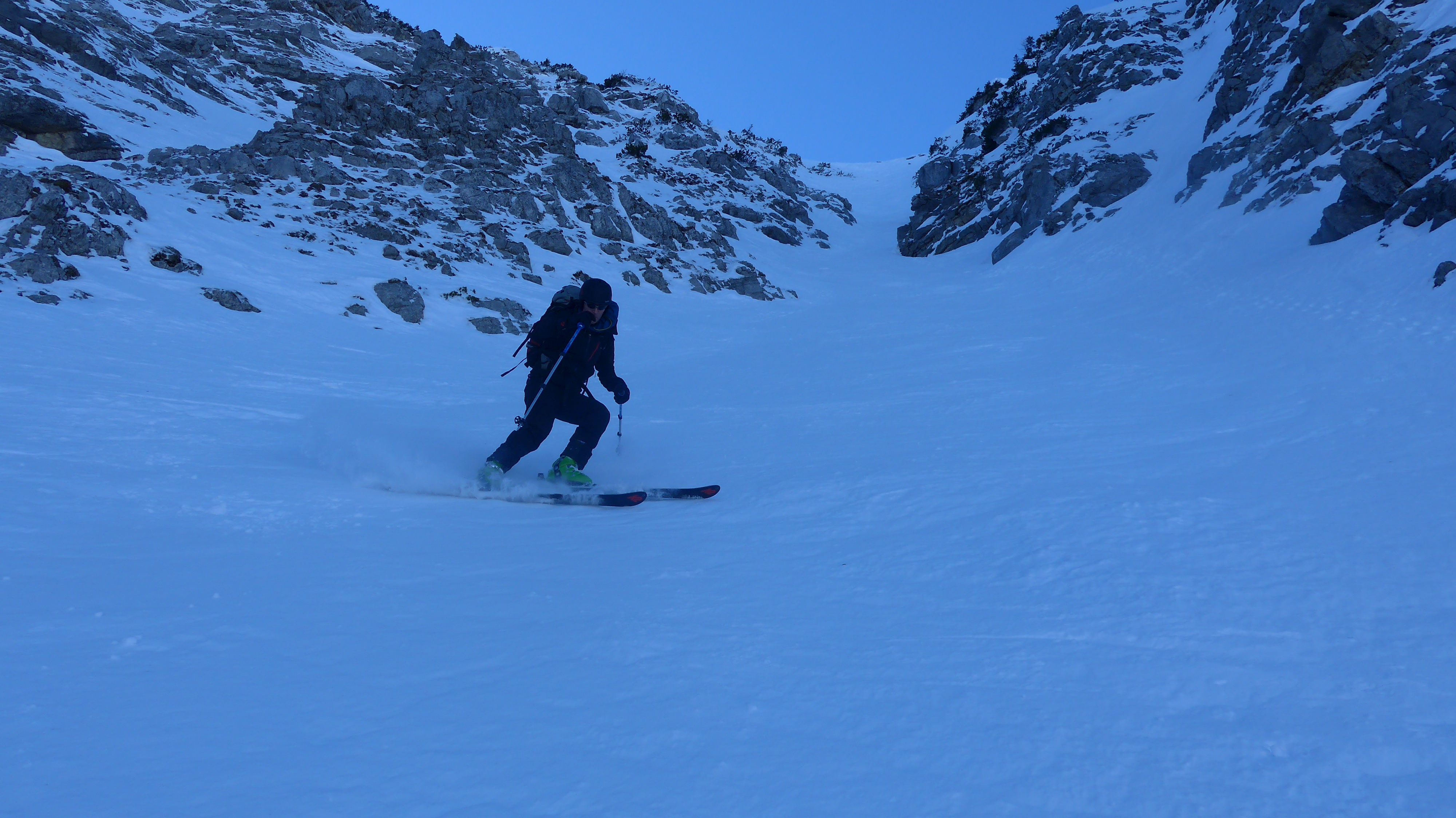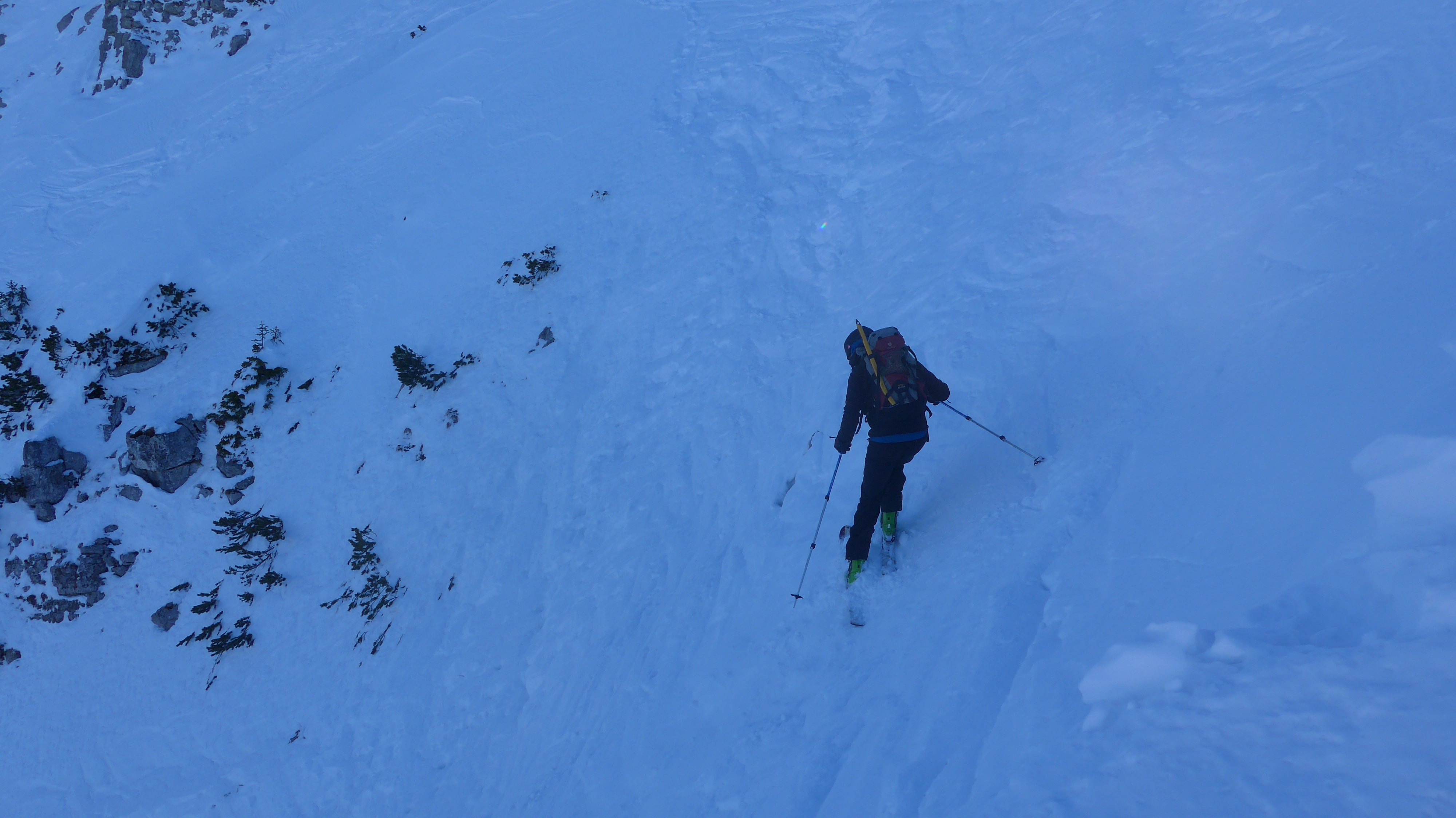 Die Nordrinne war überraschend hart und ruppig, nicht eisig. Leicht eingeschneite Regenkruste? Eigentlich war ich noch im Pulver-Modus vom Sonntag.