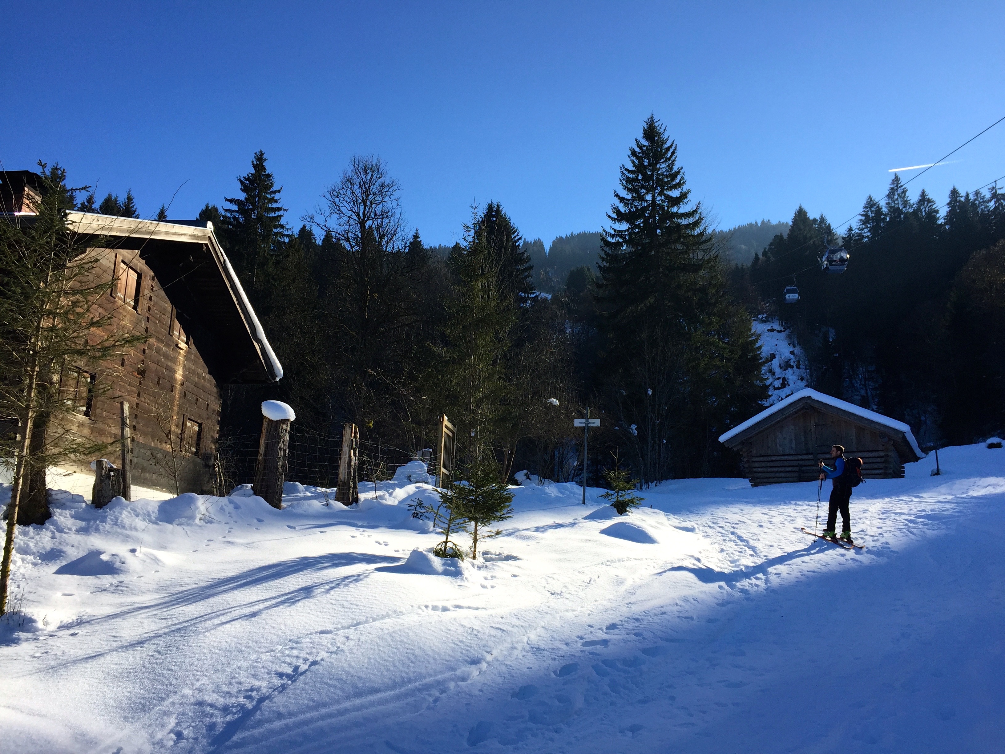 Sonstiges: Alaf helau. Mittags vom PP Hausbergbahn (710m) Richtung Horn-Abfahrt, dort aber rechts unter der Seilbahn Richtung S. Am Laingraben (900m) leicht rechts Richtung SW auf die Tonihütte (1096m) zu. Dort weiter über die Skiroute Standard-Tonihütte Richtung Trögelhütte (1436m), auf 1140m statt der Standard-Tonihütten-Abfahrt den immer noch völlig ausgelatschten Steig nach rechts Richtung Olympiaabfahrt genommen. Auf 1240m scharf links Richtung SO (Umleitung Fußweg Richtung Kreuzeck) in den Wald, ab 1320m Richtung S bis man letztlich kurz vor der Trögelhütte wieder die Skiroute erreicht. Weiter den oberen Skiweg zum Kreuzeckhaus (1652m). Damit es nicht gar so fad ist, gleich weiter zur Kreuz Alm, da legt ein DJ auf.
