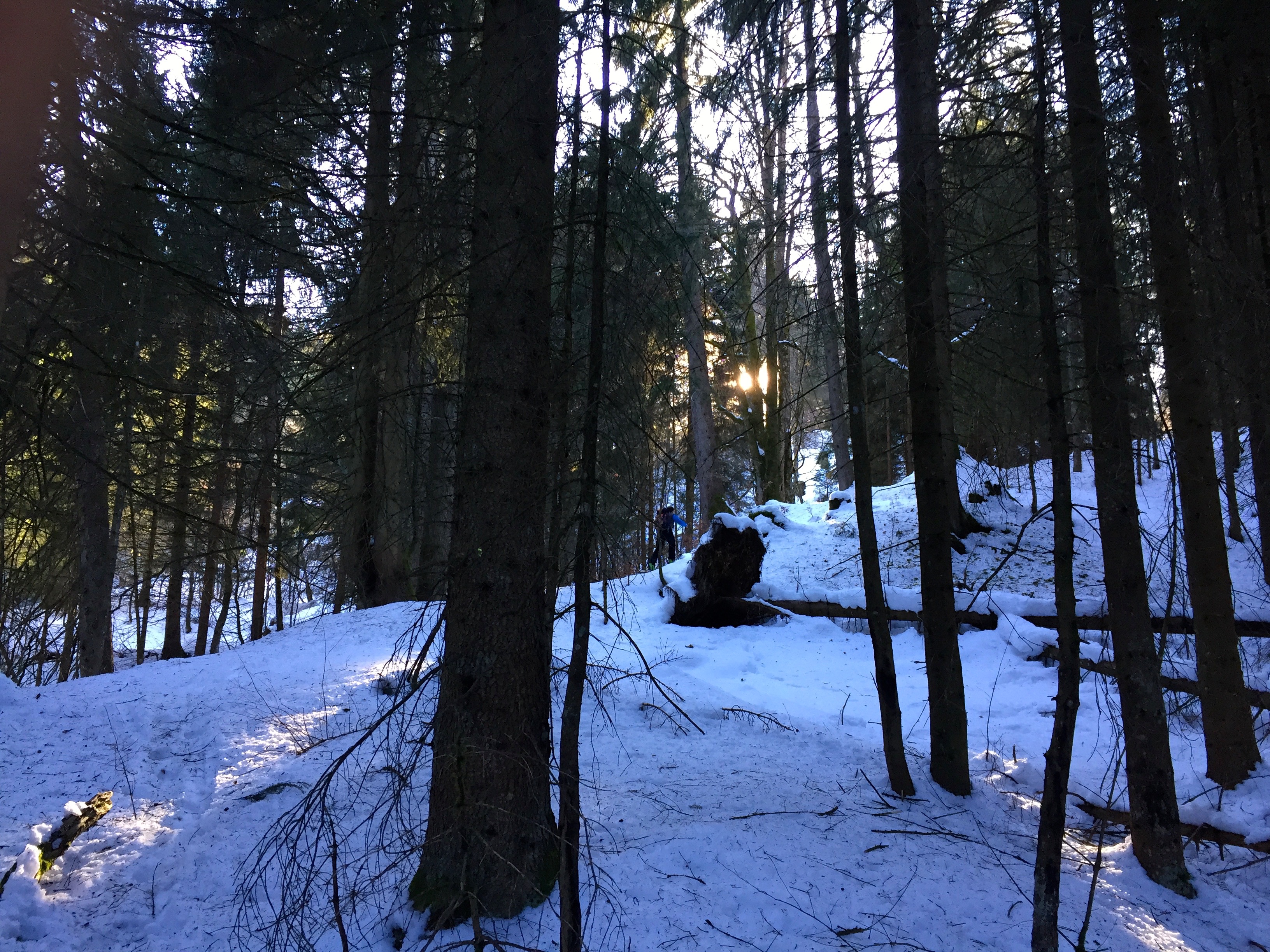 Tourenverhältnisse: Aufstieg frühjahrsmäßig, im Wald teils pappig, teils ausgelatscht seitlich abschüssig, Abfahrt unter "erschwerten" Bedingungen ![]()