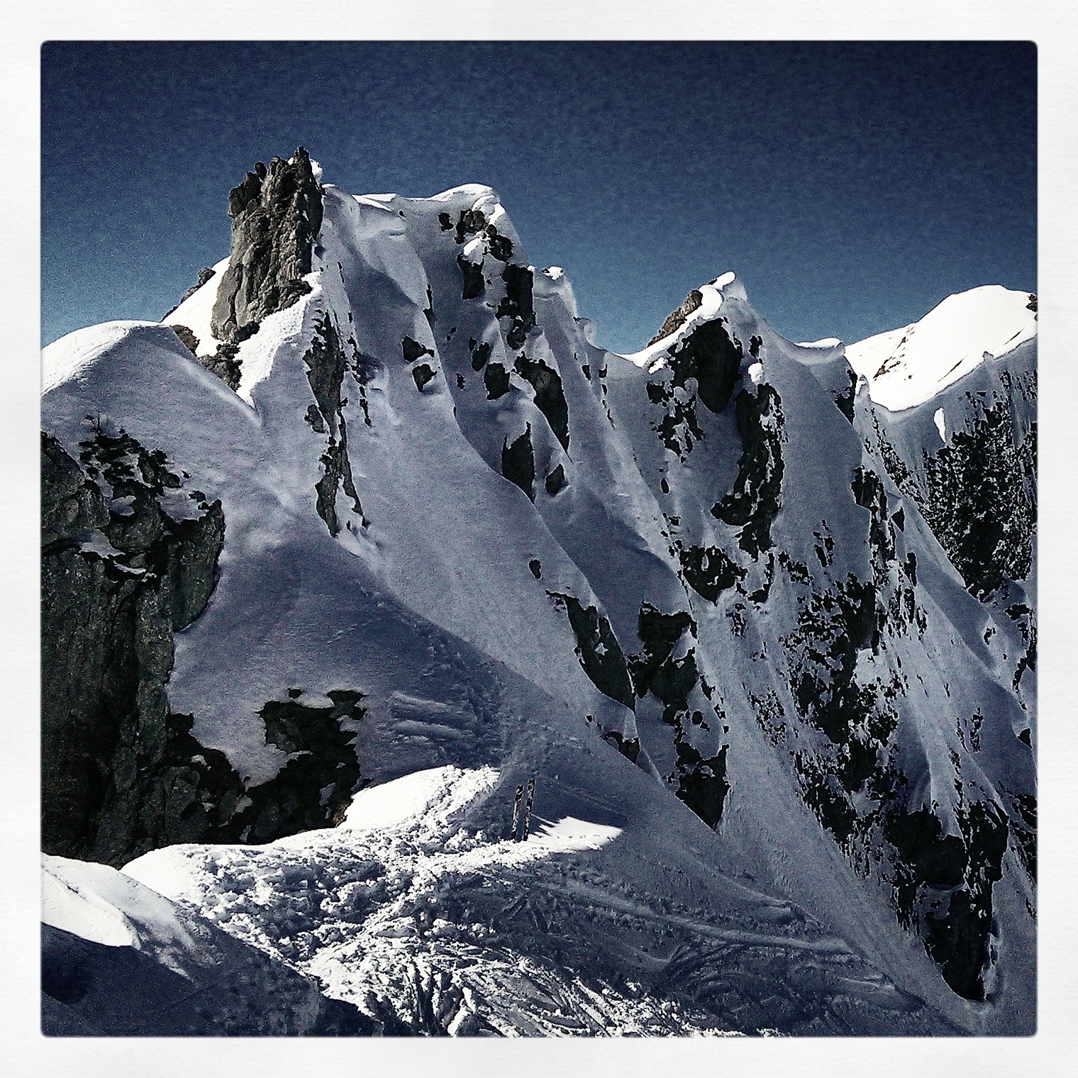 Heute auf den Widderstein recht leicht und sicher rauf. Gute Fussspur im Mittelteil der Rinne. Oben und unten gut mit Fellen möglich.