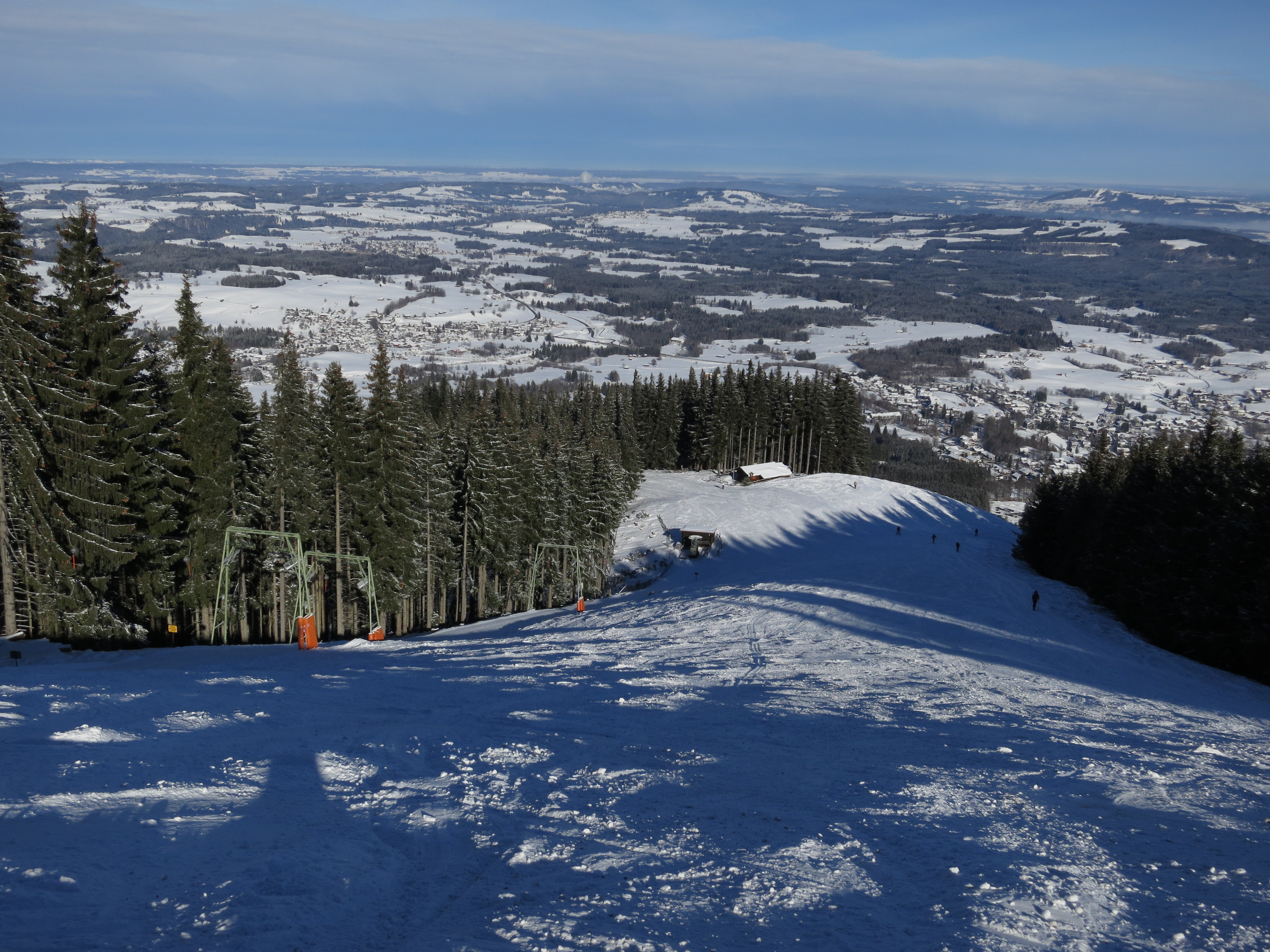 Tourenverhältnisse: Die Abfahrt vom Hinteren Hörnle war vom Gipfel weg möglich (dünne Neuschneeauflage auf festem Untergrund). Die Piste ist teils in gutem Zustand, teils aber auch schon abgeschabt. Insgesamt aber gute Verhältnisse.