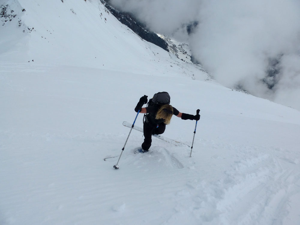 Ab dem Gipfel dann erst eine Abfahrsspur