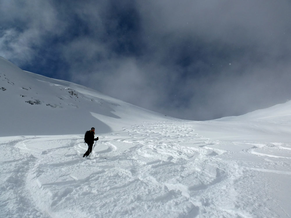 Prognose: Heute sehr starker Wind, Muttenkopf hat mit Abstand den besten Schnee in diesem Tal