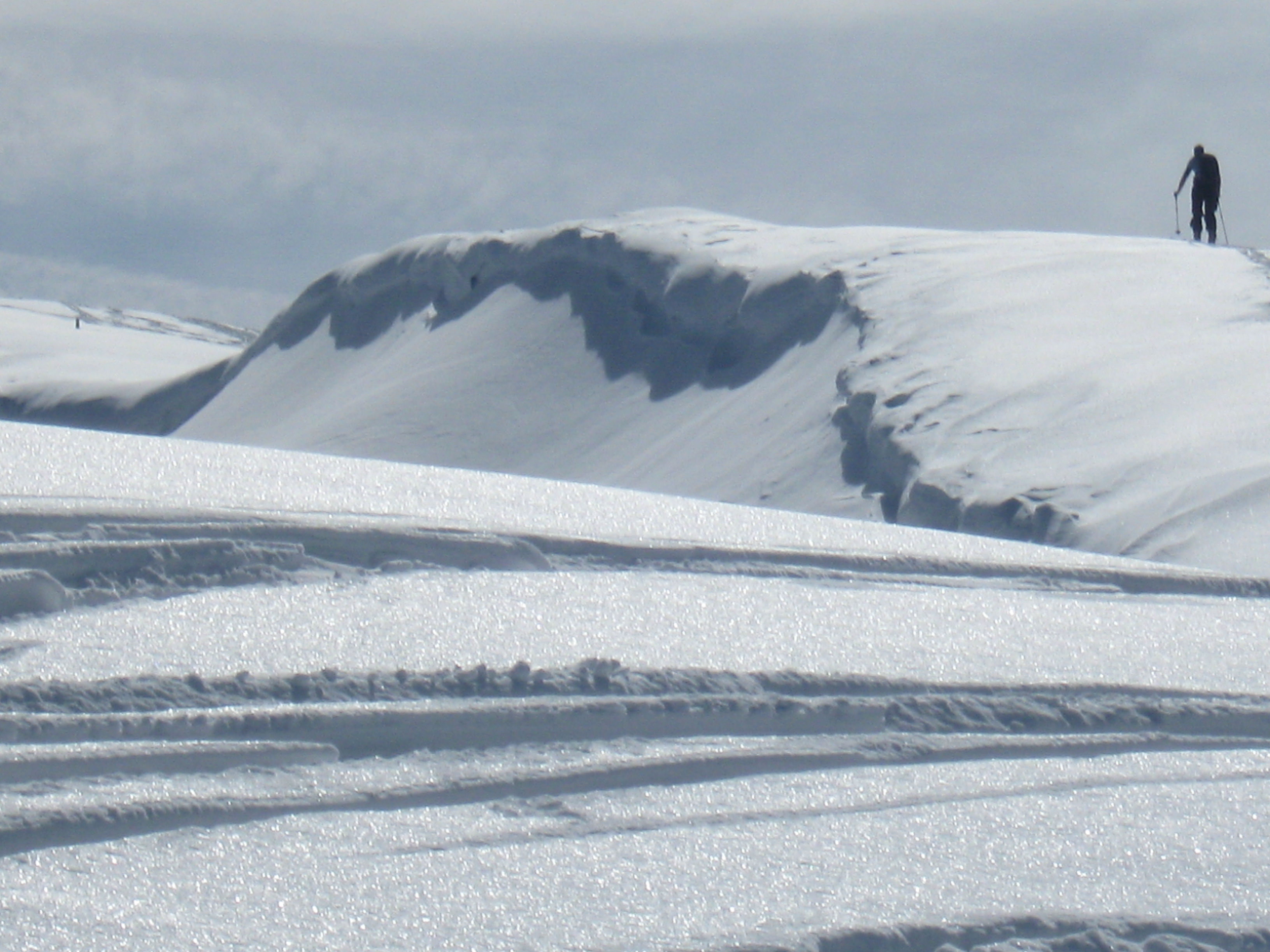 Tourenverhältnisse: oben noch gut, nach unten schlechter werdend, aber zumindest noch Schnee