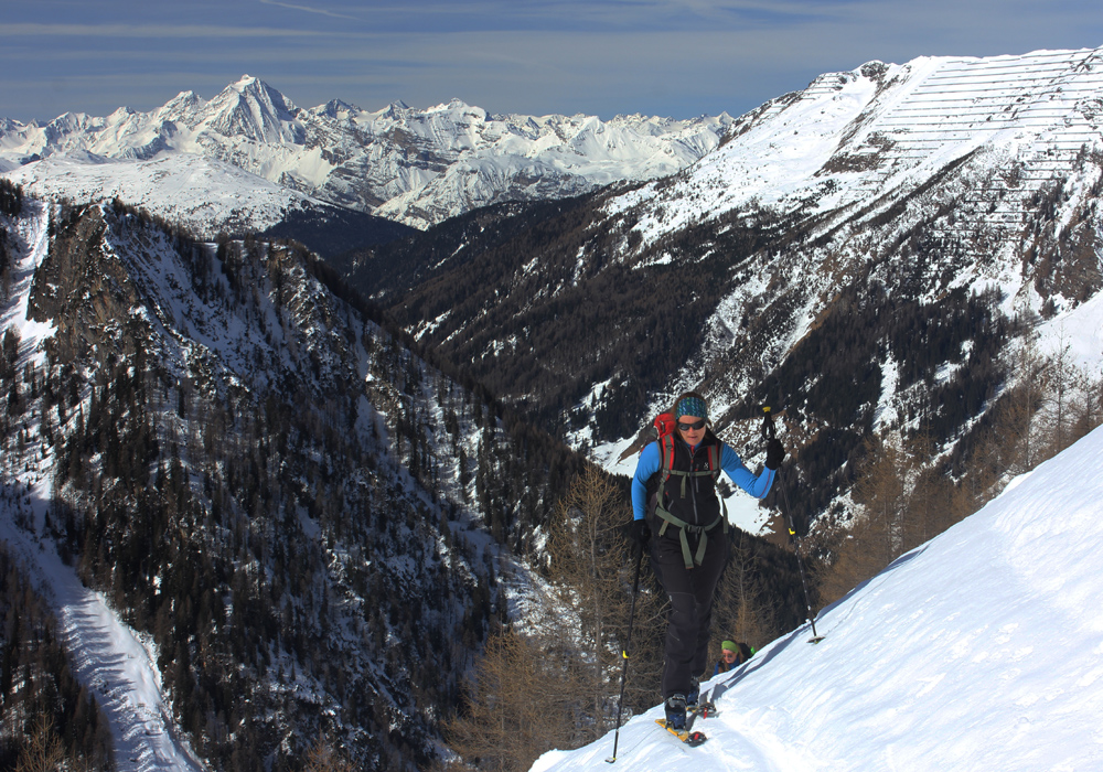 Tourenverhältnisse: Nordseitig noch genug Schnee bis in die Täler. In Schattenlagen war noch guter Pulver anzutreffen. Allerdings bei den beliebten Touren schon stark zerfahren.